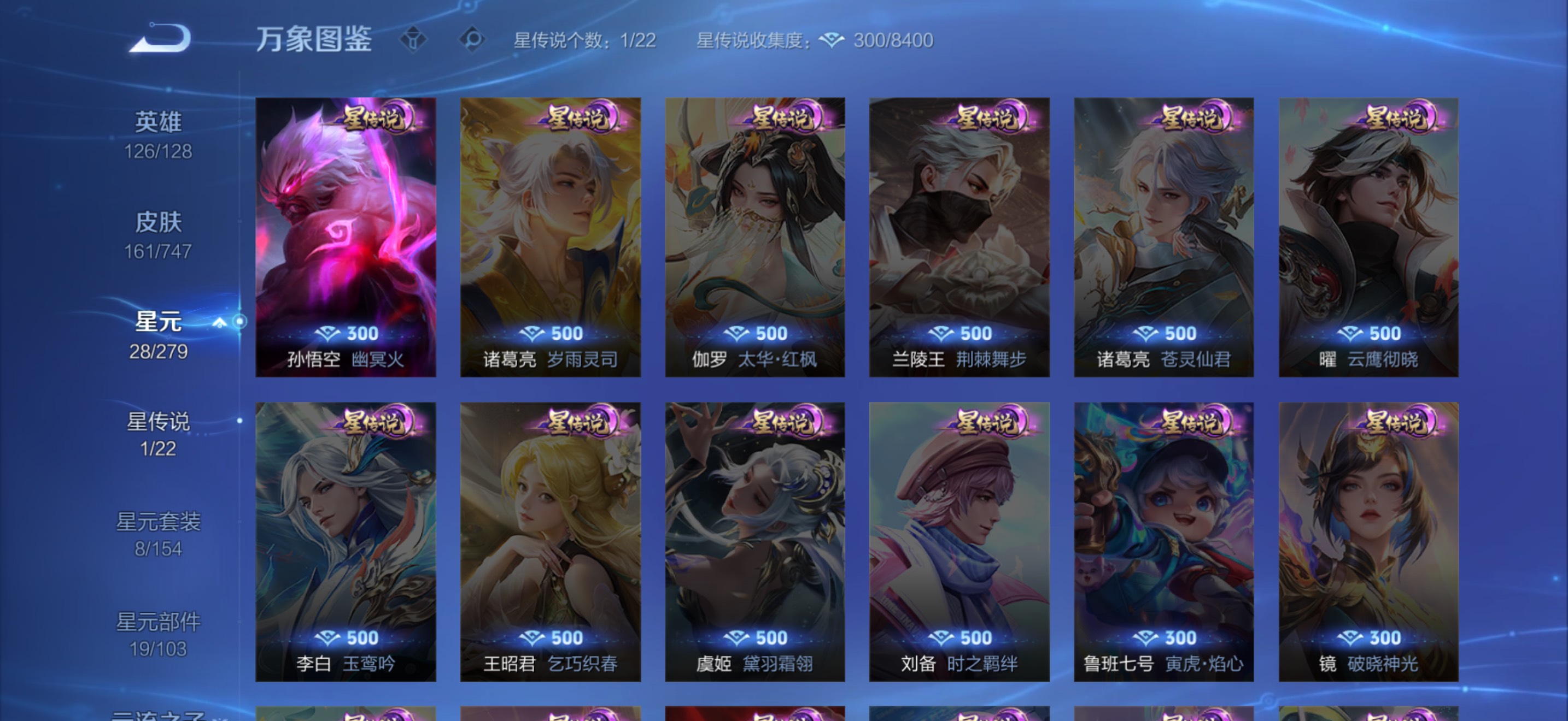 161个皮肤 金标貂蝉 金标猪八戒 金标黄忠