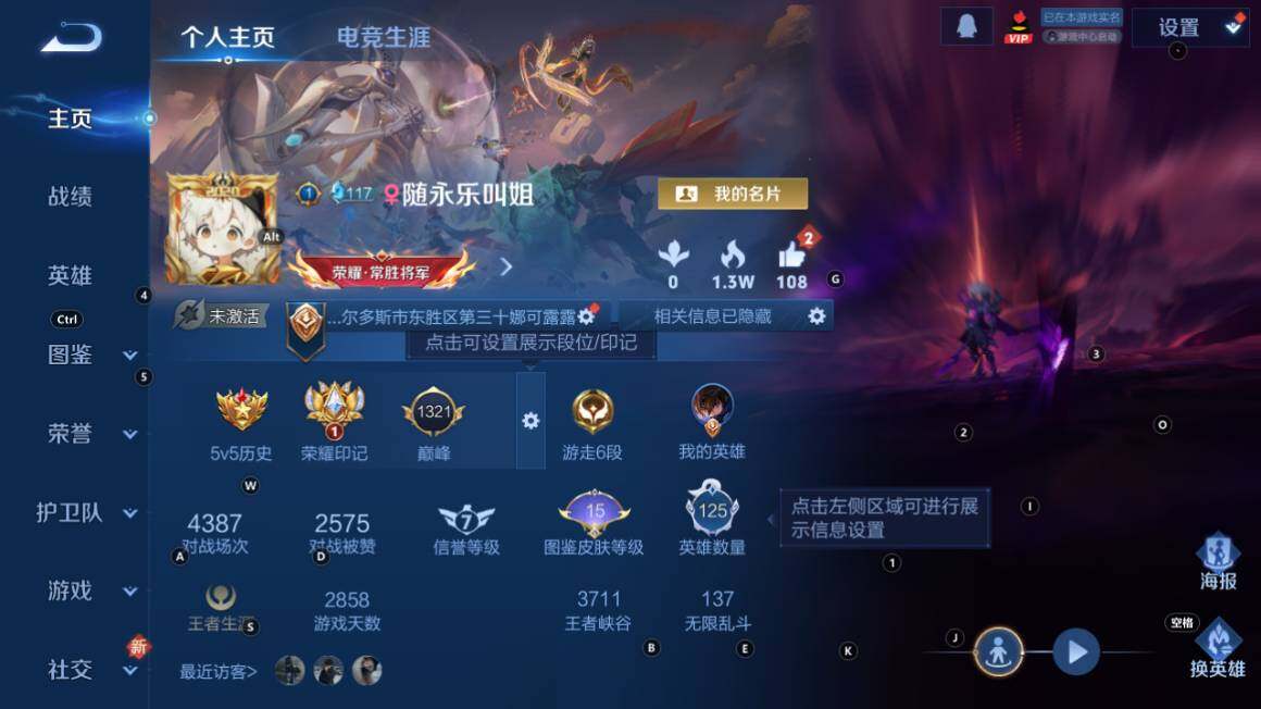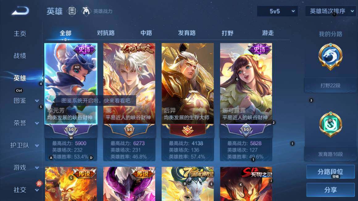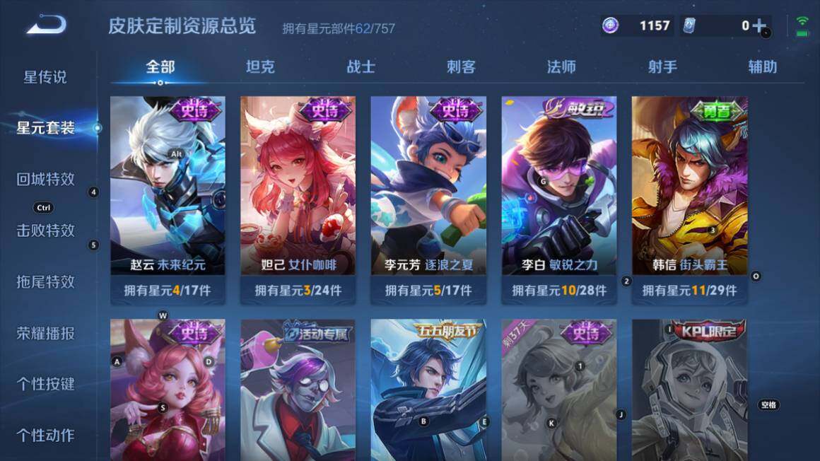 1星传说,4按键,打野22段,发育16段,,安卓Q-V5-125英雄-129皮肤-4传说-24史诗