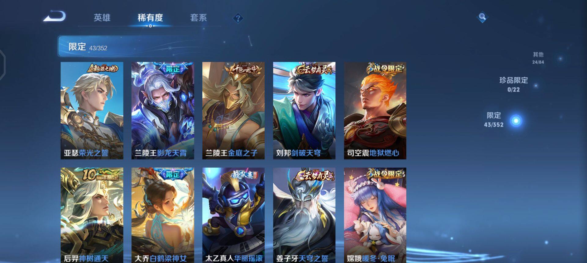 【限定皮肤】:虞姬夏日便利店,姜子牙天穹之誓,狄仁杰阴阳师,赵云皇家上将,嬴