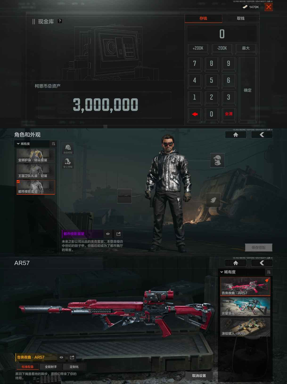 DSTW1819+安卓Q-等级30-仓库价值33m-科恩币1470k现金库3m-【套装】 金狮护身,转运套装 王国卫队礼装、轻装 都市夜彩套装 【枪皮】 告丧夜曲·AR57 旗帜·AEK 旧王圣谕·QBZ191 旧王圣谕·VSS 【近战武器】 工兵铲 野战折刀