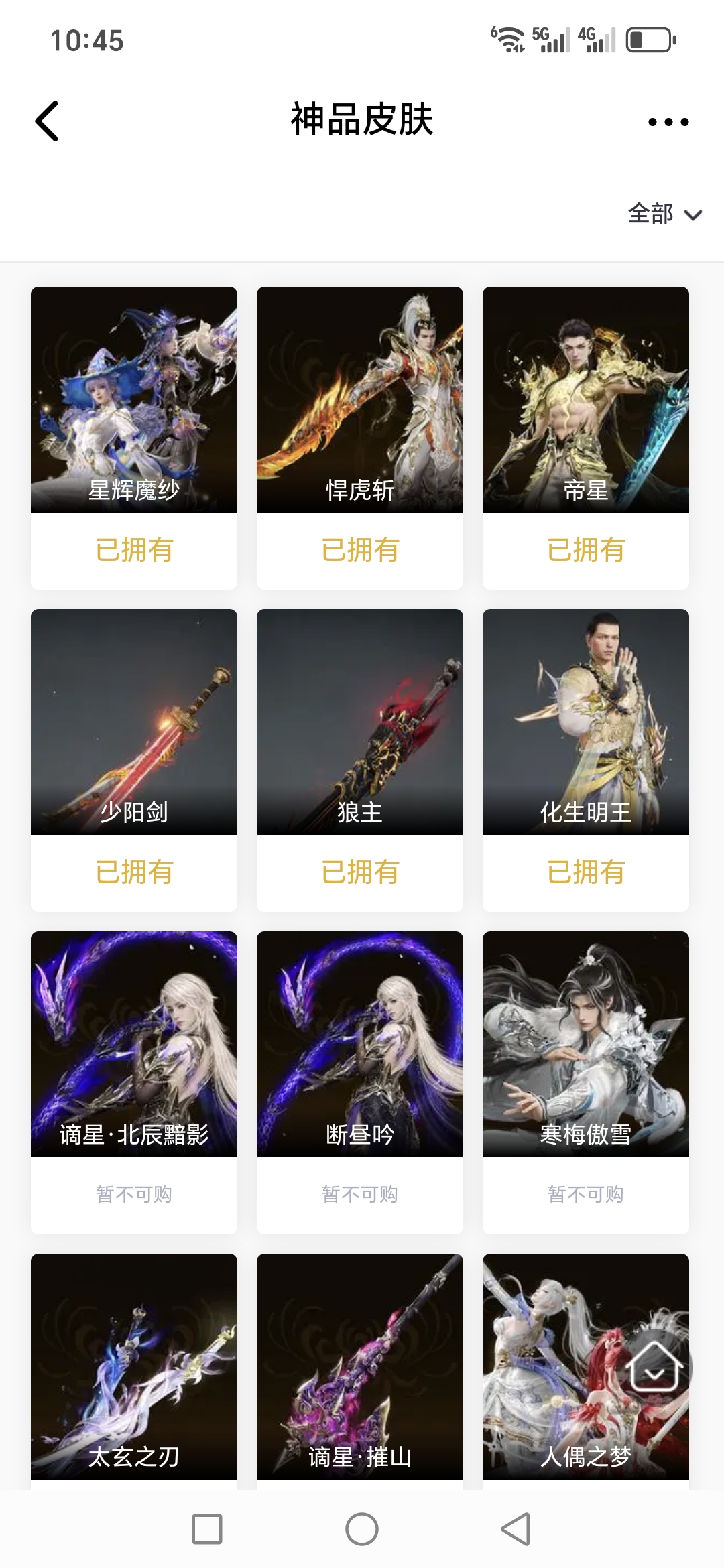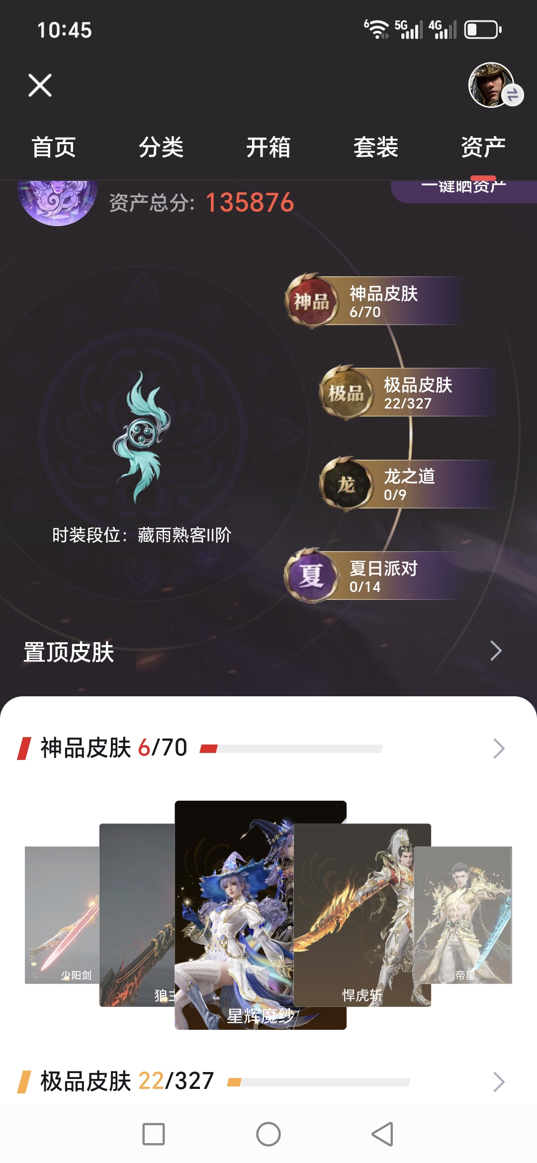 6红 22金 帝星 悍虎斩 少阳剑 星辉魔纱 换绑时间1.24