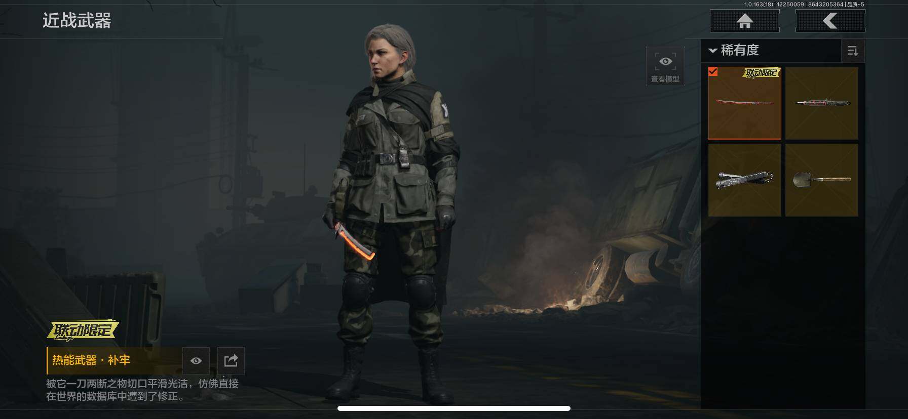 等级:30/段位:暗区传说/仓库价值(百万):3/柯恩币:104227/热能武器补牢/胜利军刀/龙魂双节棍/
