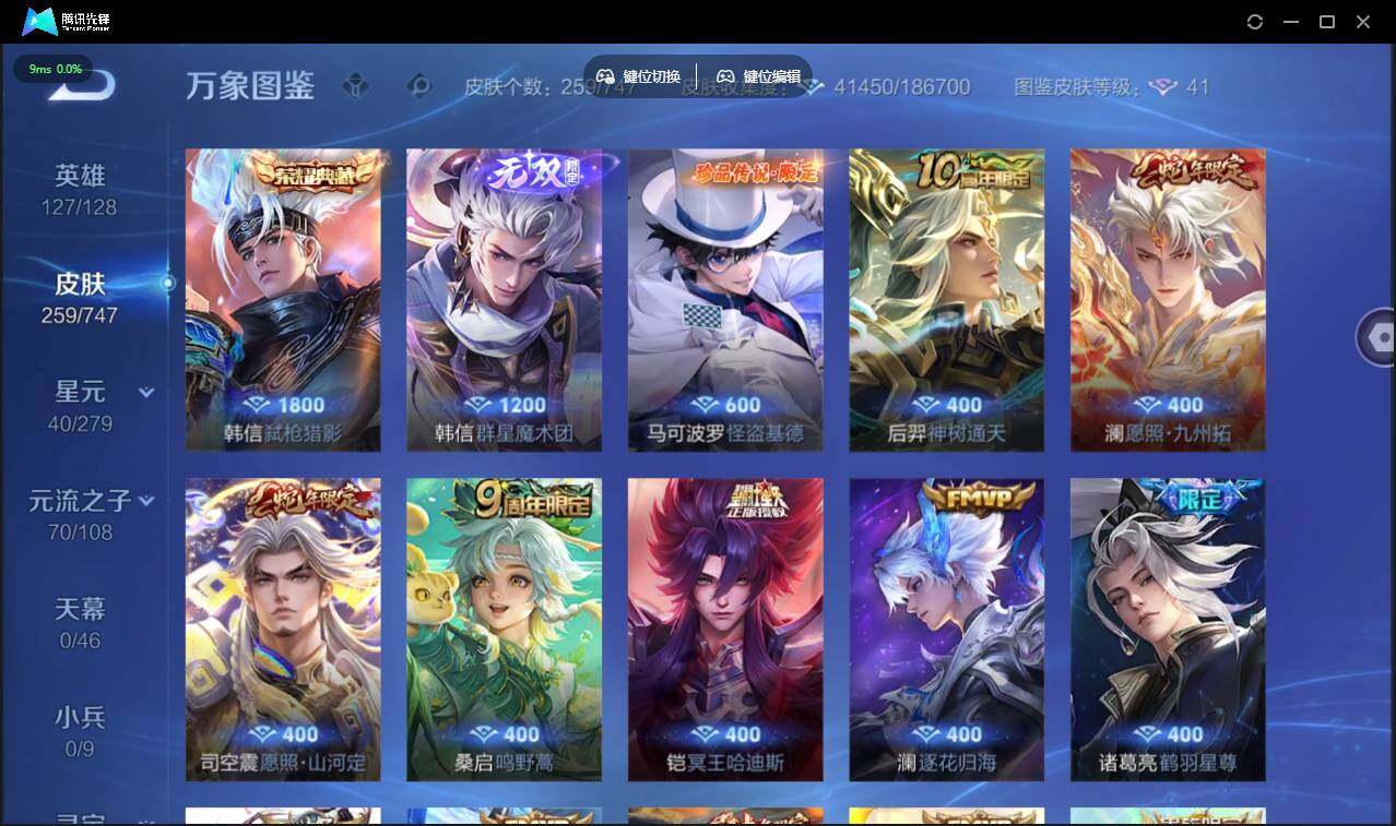 1829250 王者荣耀账号 安卓Q-V8-最强王者段位-127英雄-259皮肤-1典藏皮肤-1无双-1珍品传说-20传说-80史诗