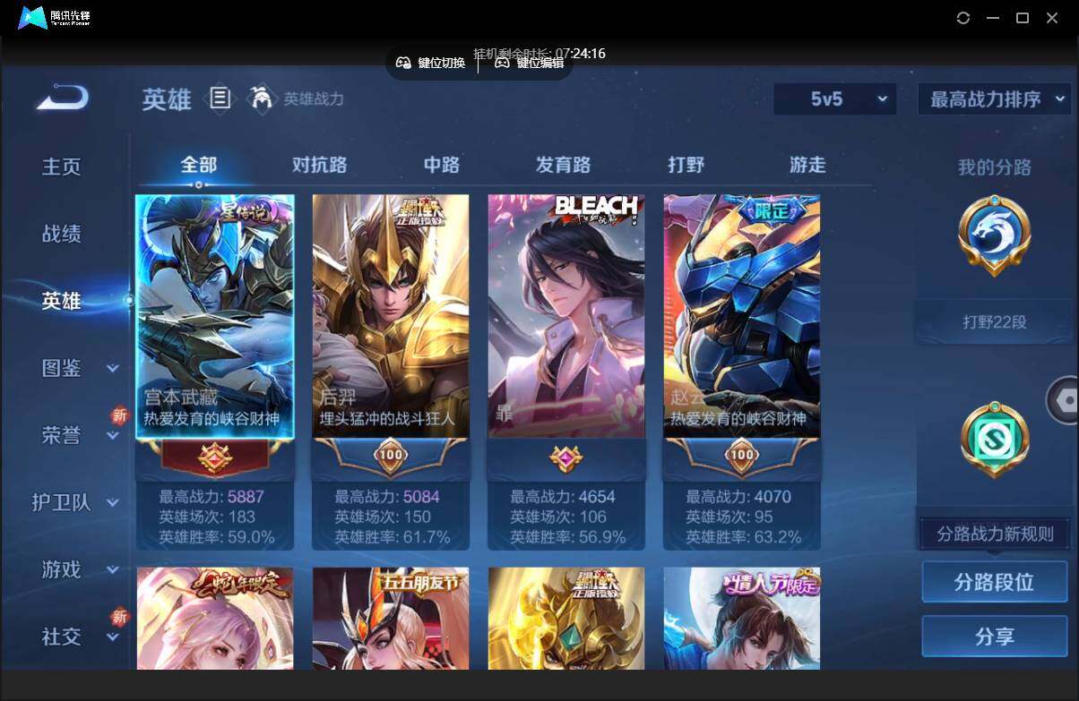 【W4372】【亮点:4.9k场次开局号-九霄神辉-朽木白哉】营地ID:426692062【热门:凤求凰-愿照岁时盈-零号赤焰-至尊宝】安卓q-有二次-贵8-125英雄-198皮肤-1典藏-2星元-1珍品-13传说-72限定-7按键-贵族积分5.5w