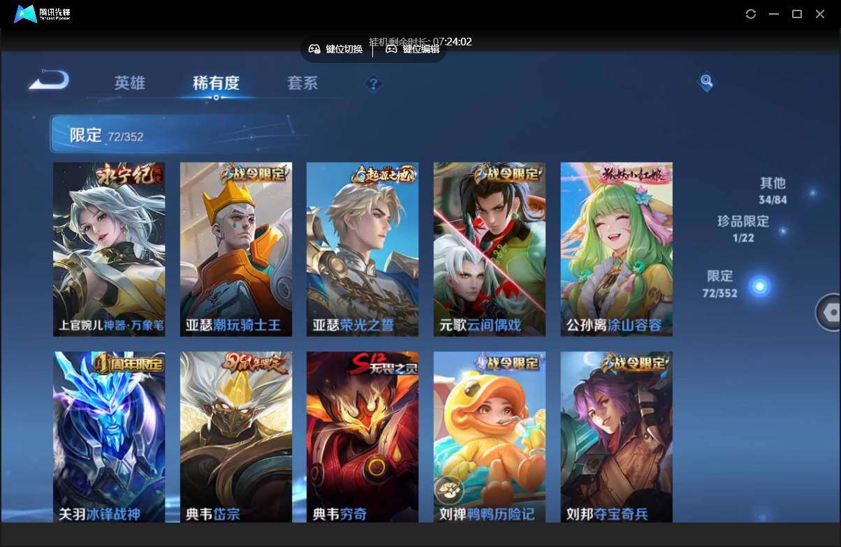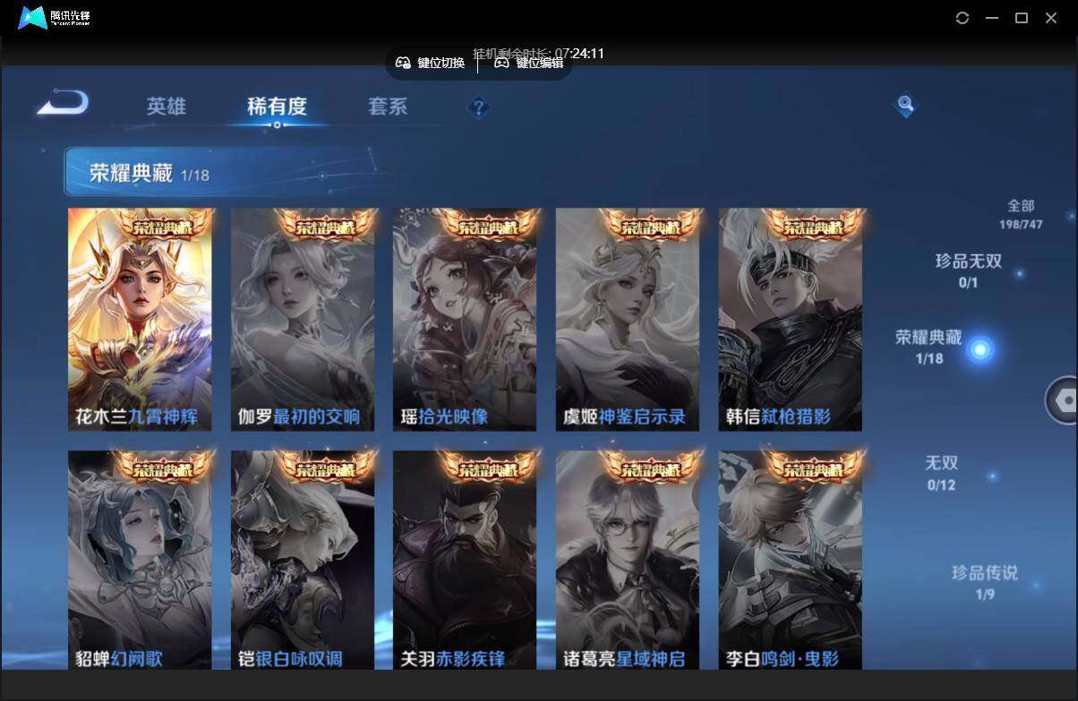 安卓QQ-1典藏-13传说-198皮肤-125英雄-荣耀王者