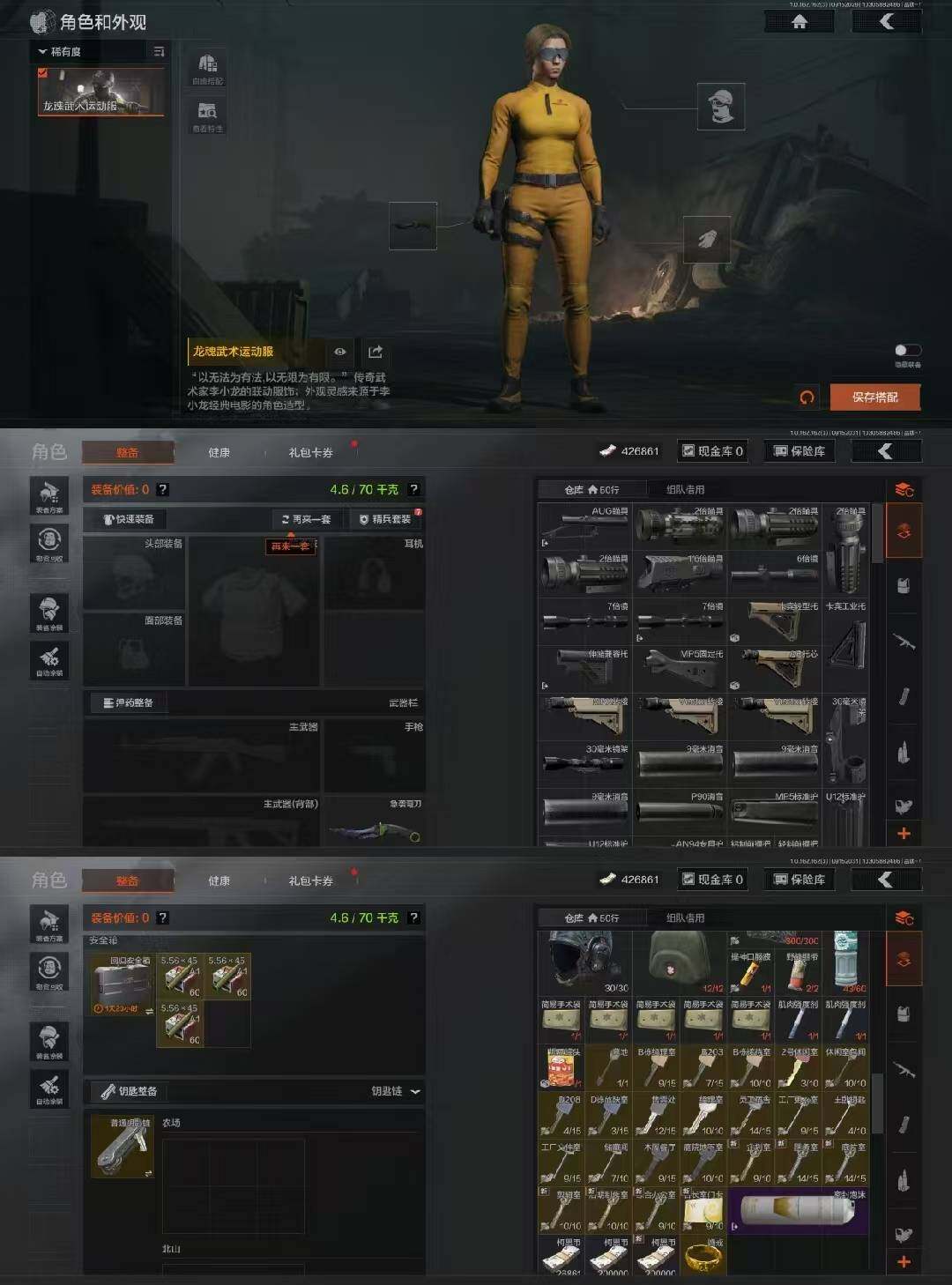 hk208暗区《3刀1金枪1金衣》急袭弯刀 双截棍 盘牙 龙魂武术运动服 骑士之剑-vss 仓库价值