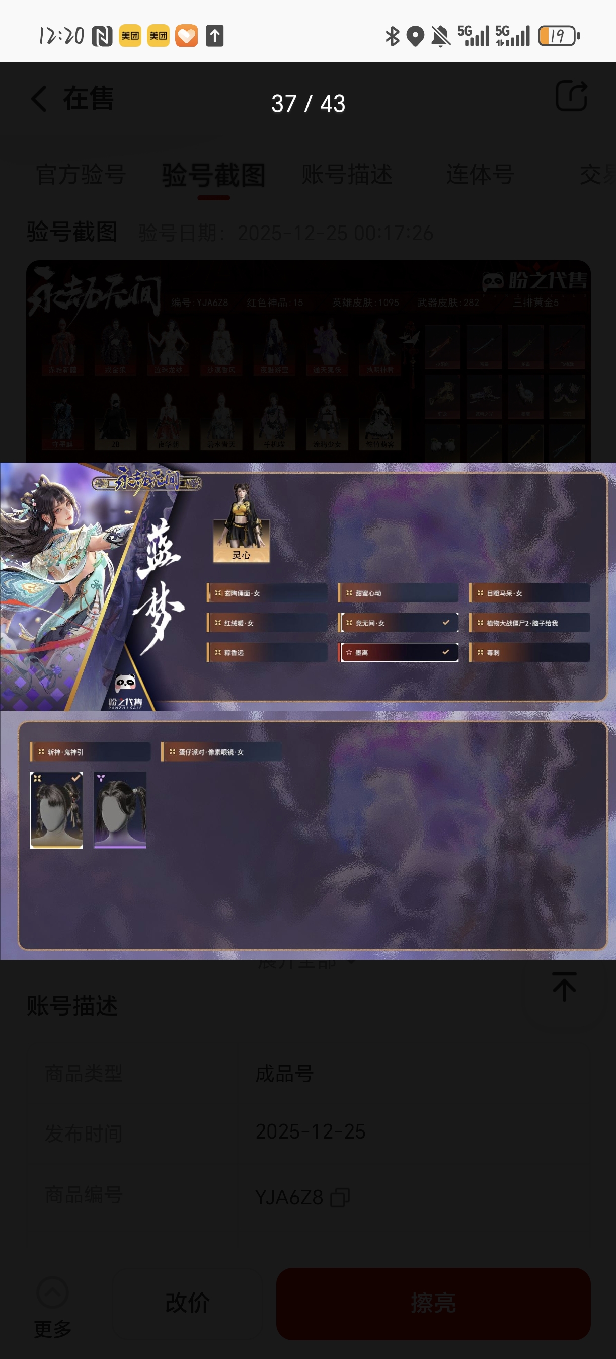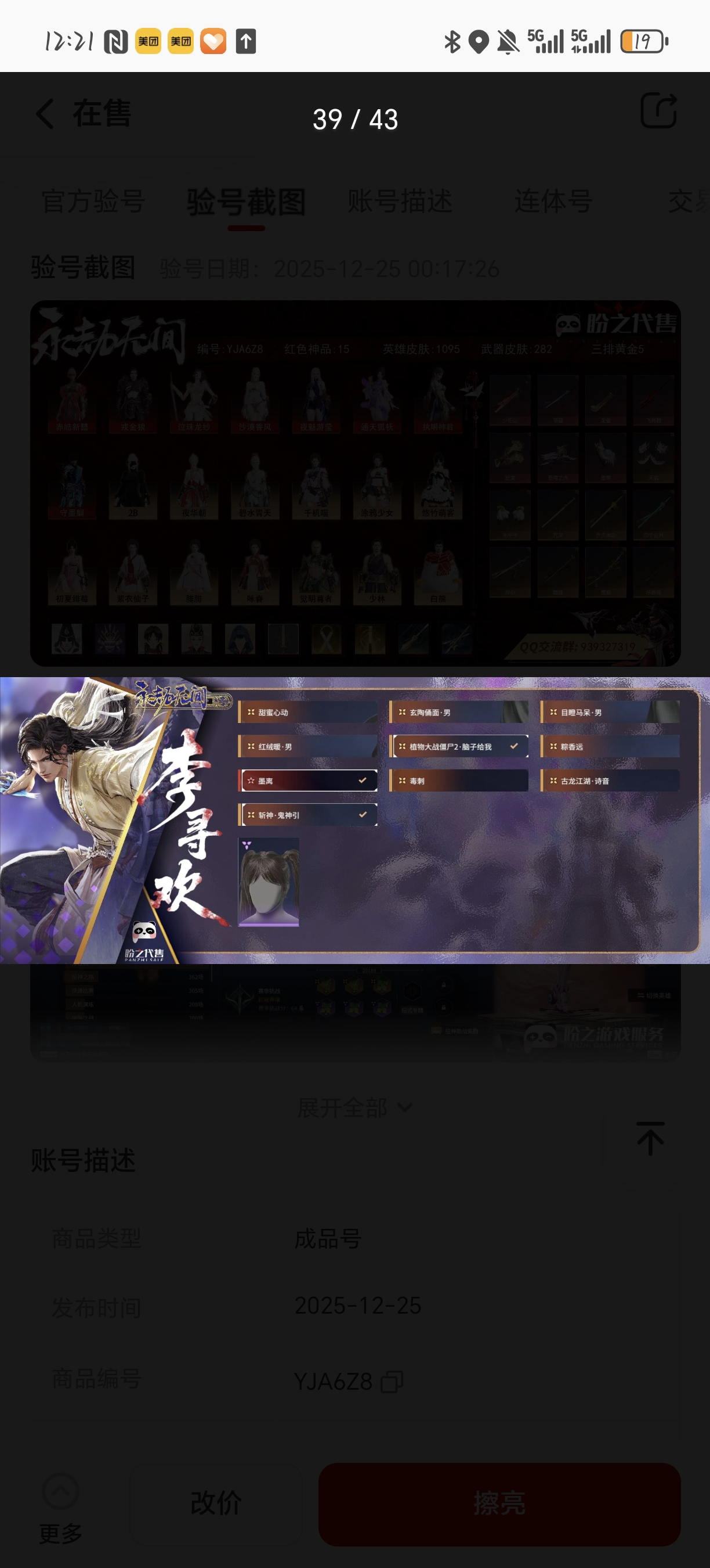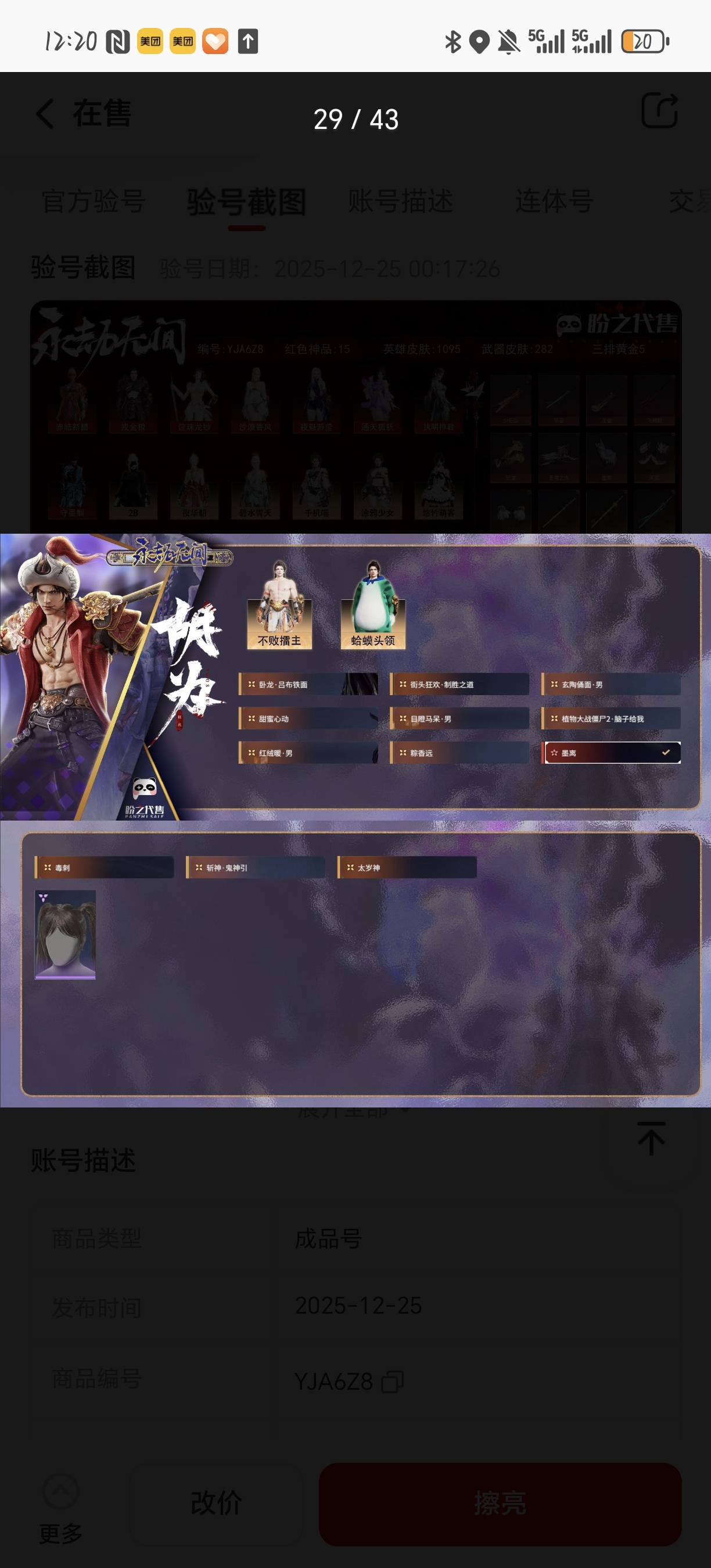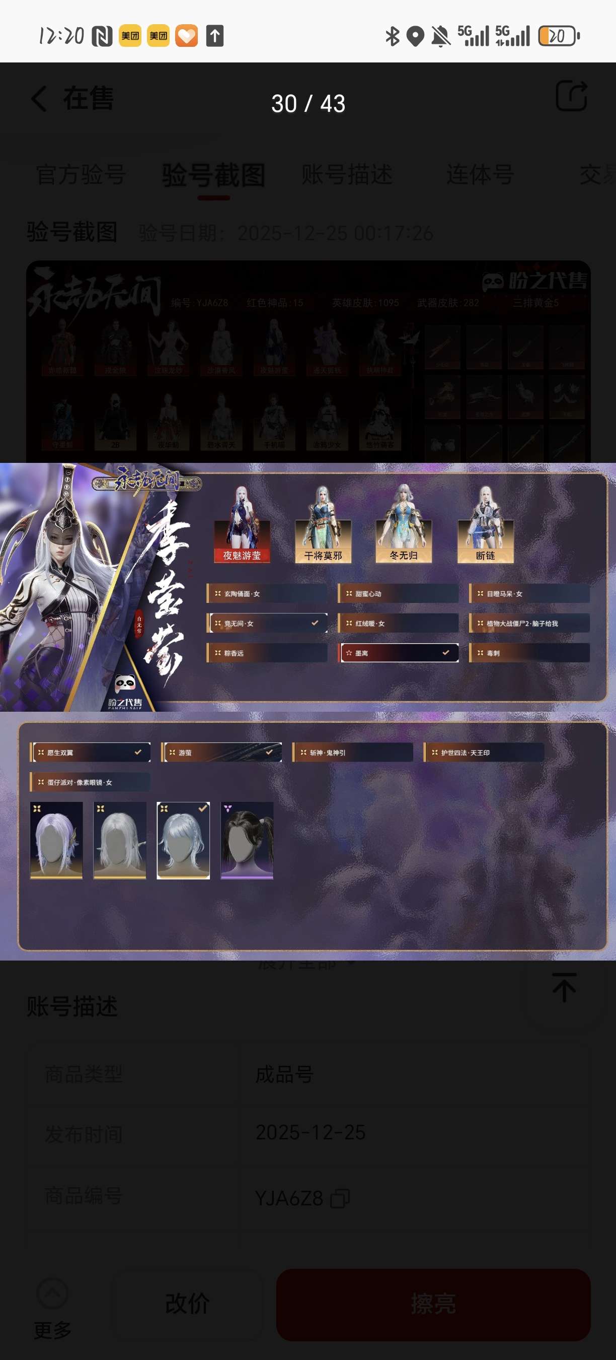 通过App,与卖家商议价格及保险,并向卖家索要账号最新截图,确认后下单购买。