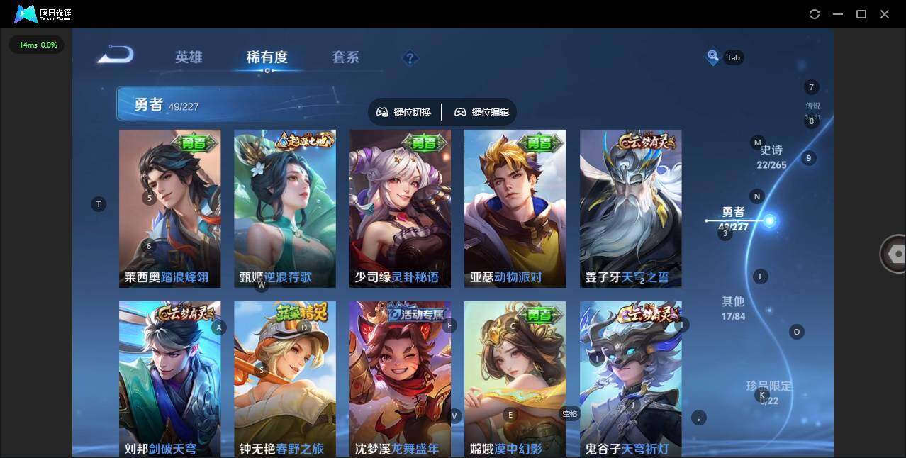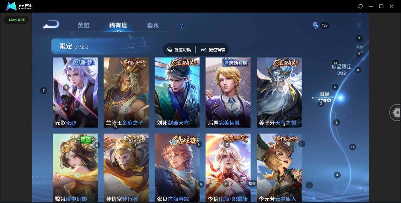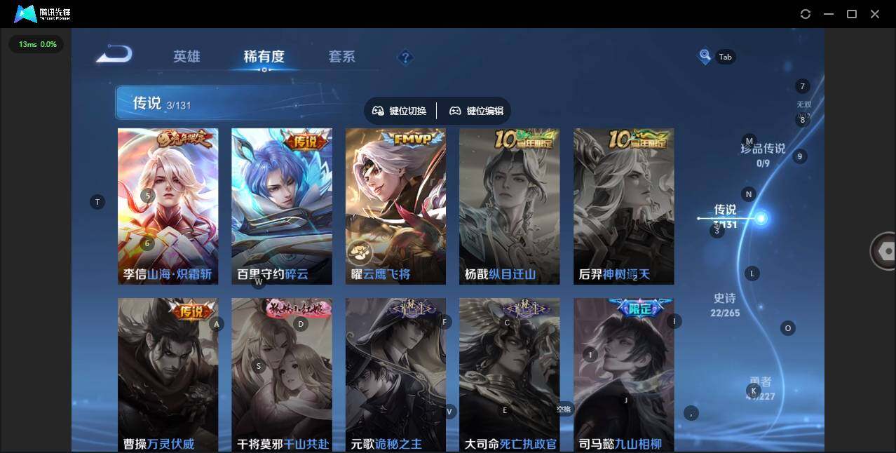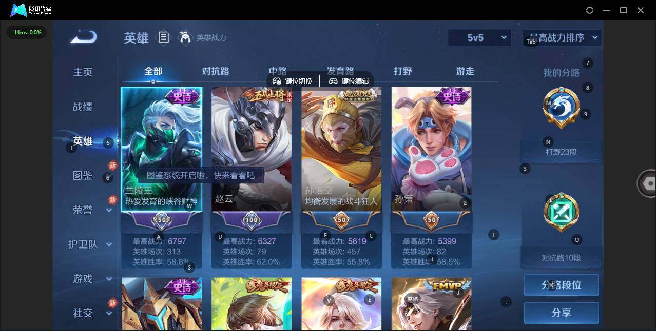 实名: 可修改 贵族等级: V5 英雄数: 116 皮肤数: 91 传说皮: 云鹰飞将,碎云,山海·炽霜斩 限定皮: 李小龙,龙胆,孙行者,五谷丰年,山海·玄木吟