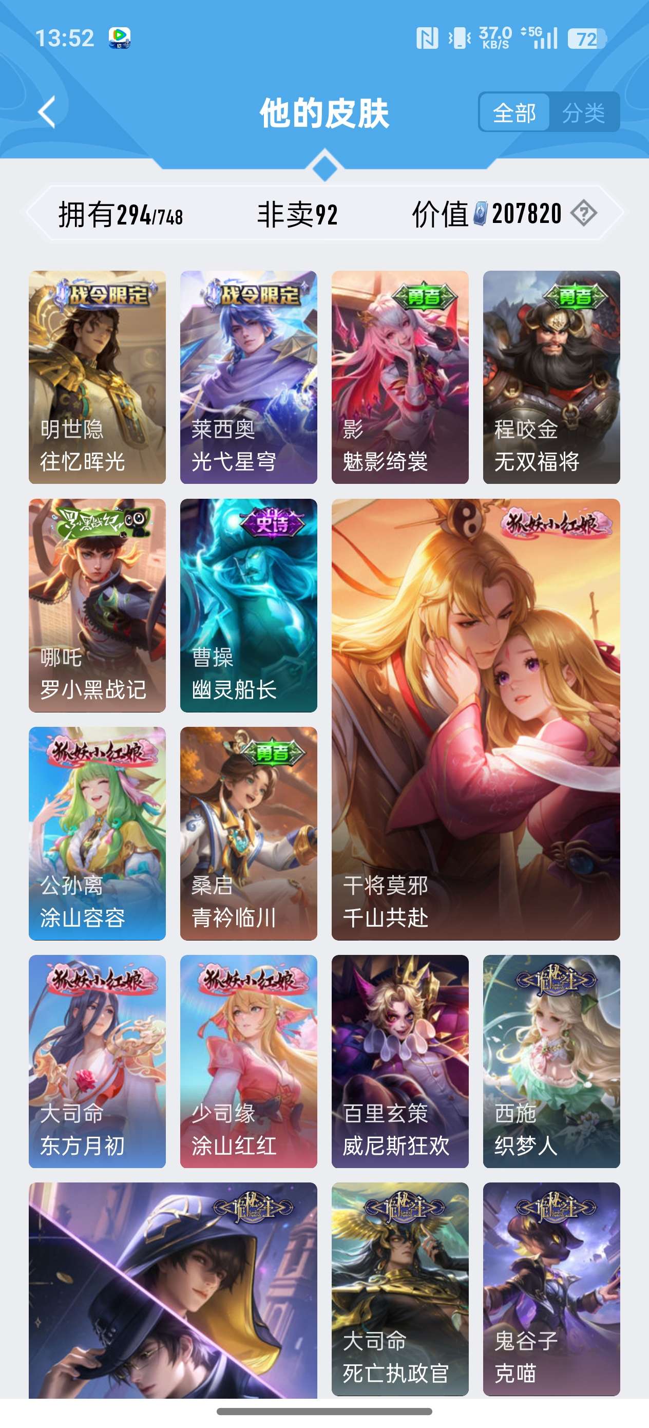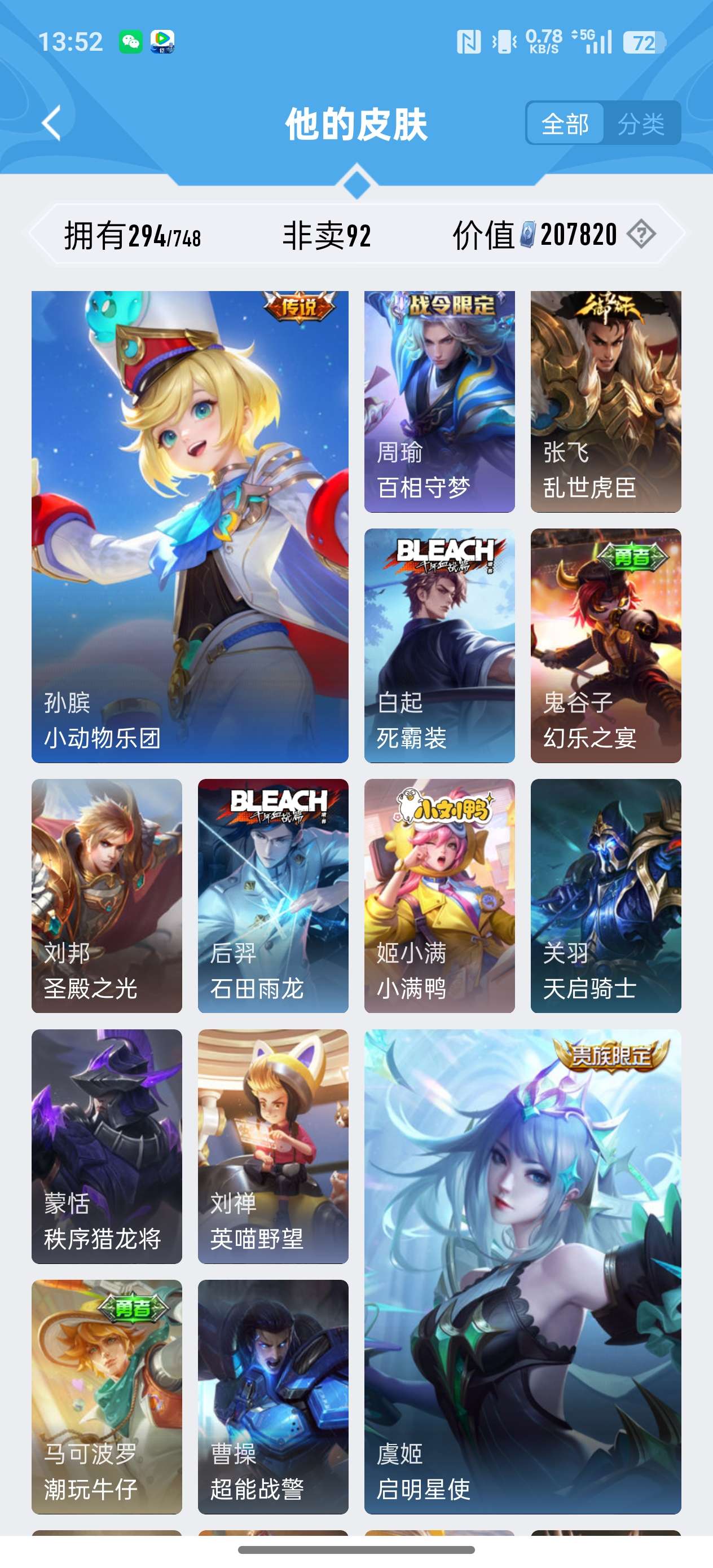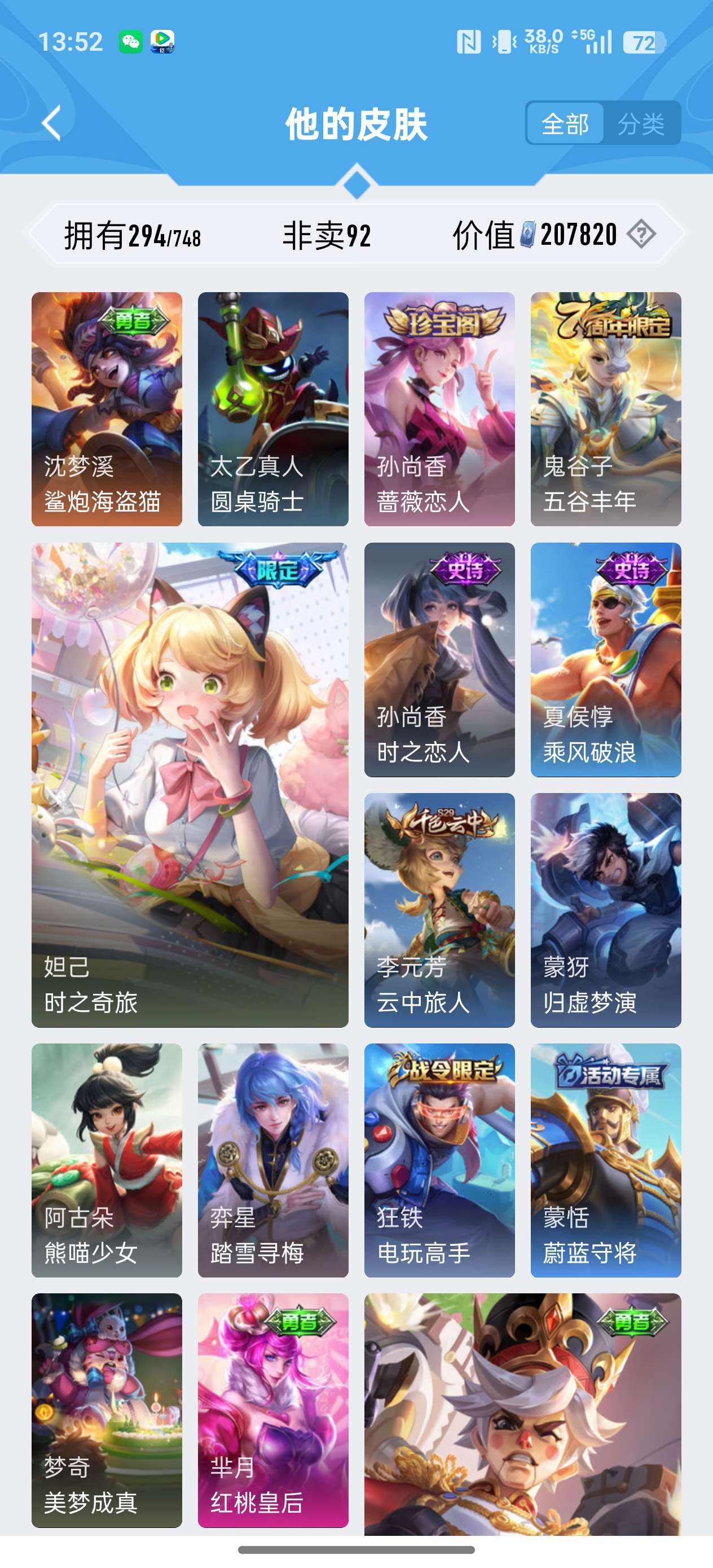 苹果QQ/无双王者/294皮肤/125英雄/1典藏/0珍品无双/0无双/1珍品传说/21传说/79史