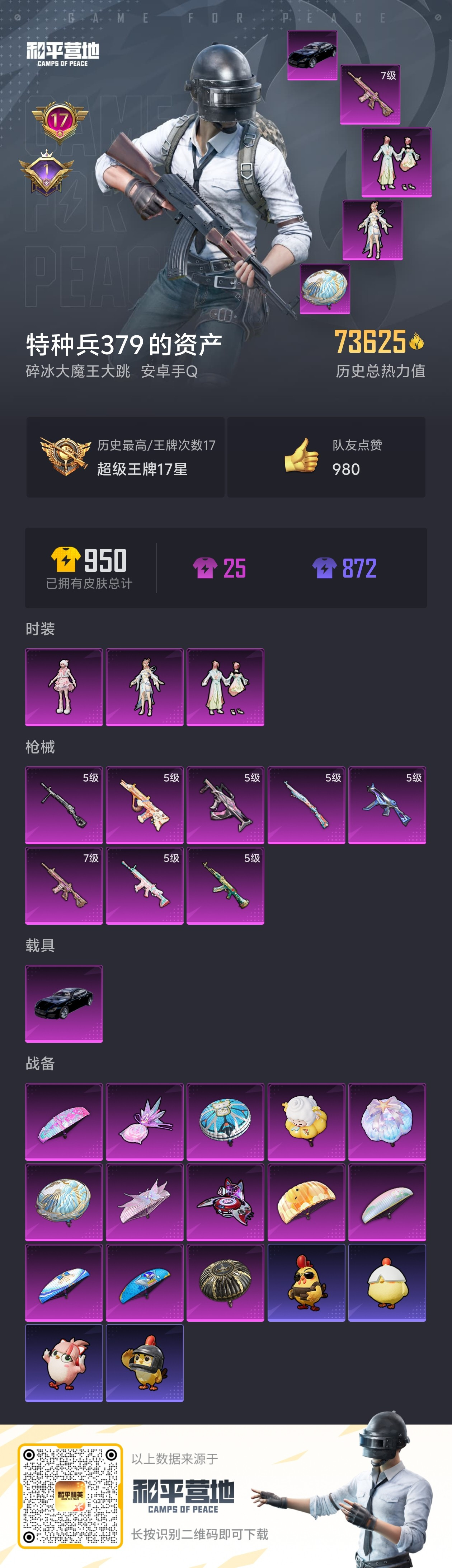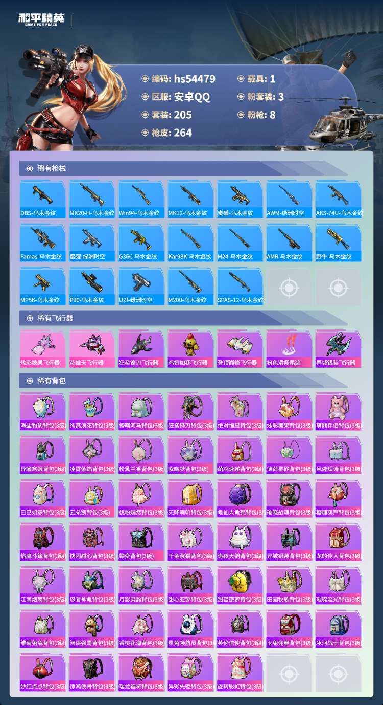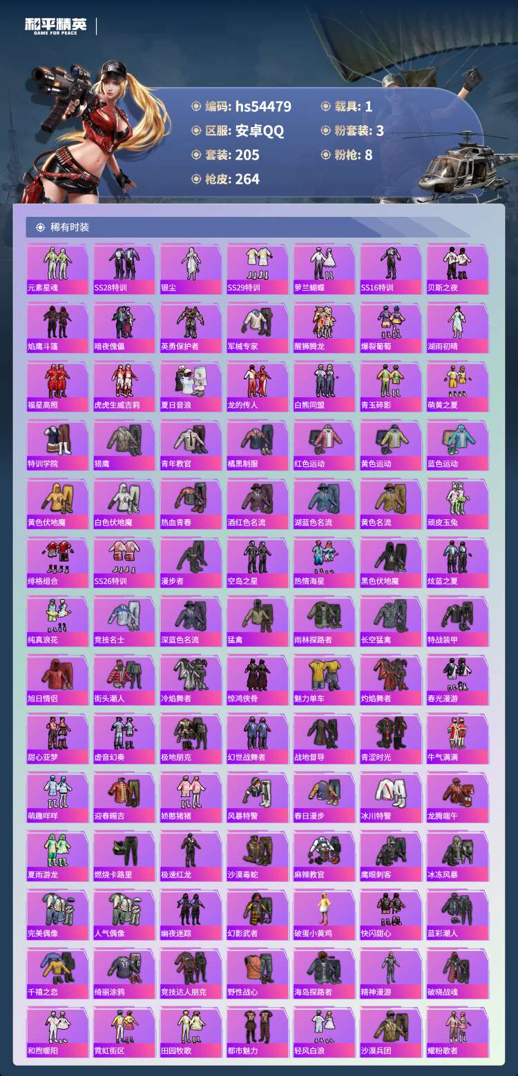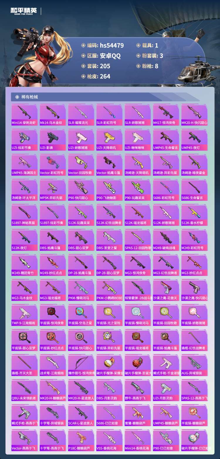 hs54479 安卓手Q-17王牌印记-3粉装-8特效枪-1载具-73645热力值-205套装-26