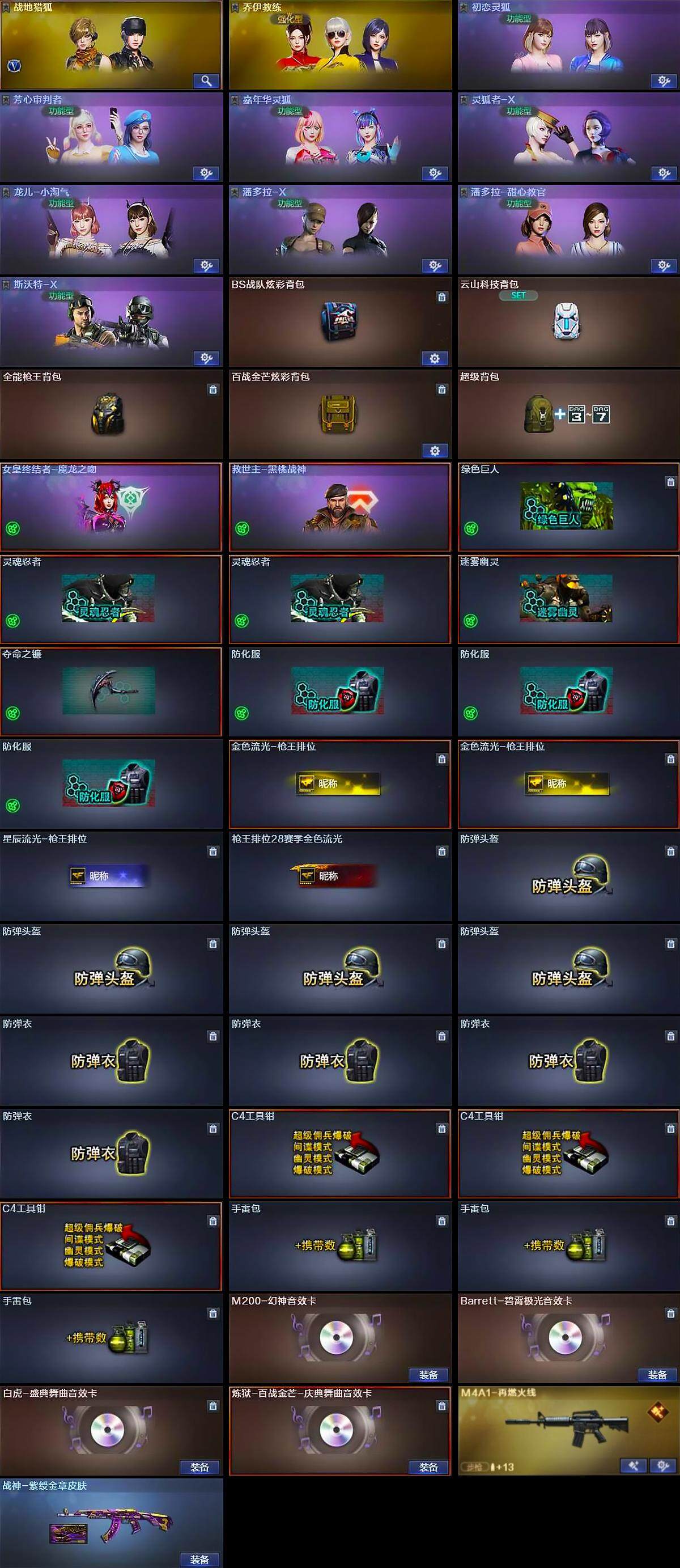 【音效卡】:M200-幻神音效卡,Barrett-碧霄极光音效卡,白虎-盛典舞曲音效卡,炼狱-百战金芒-庆典舞曲音效卡