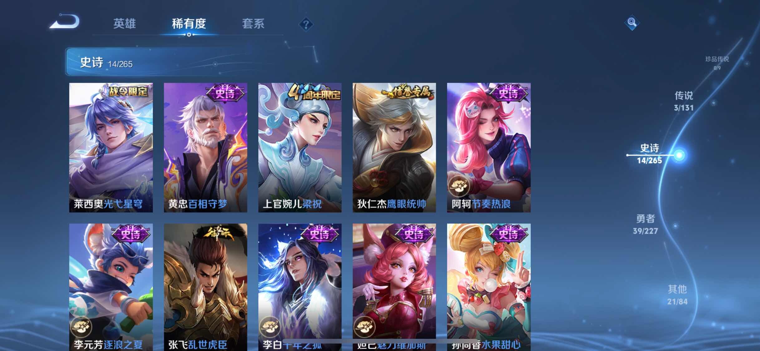 【限定皮肤】:姜子牙天穹之誓,狄仁杰阴阳师,赵云皇家上将,项羽海滩派对,上官婉儿梁祝,鲁班大师探海日志,张良古海寻踪,鬼谷子天穹祈灯,刘邦剑破天穹,周瑜熔