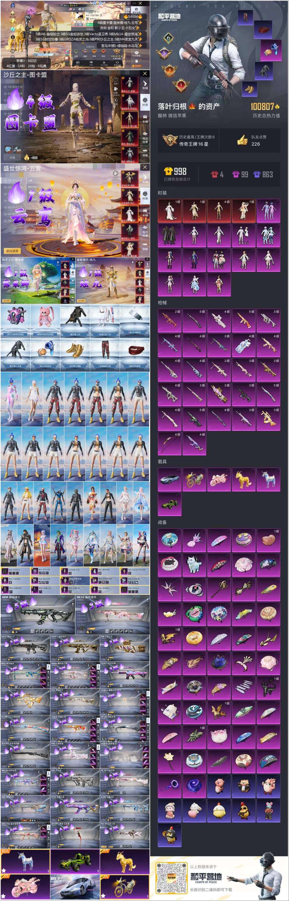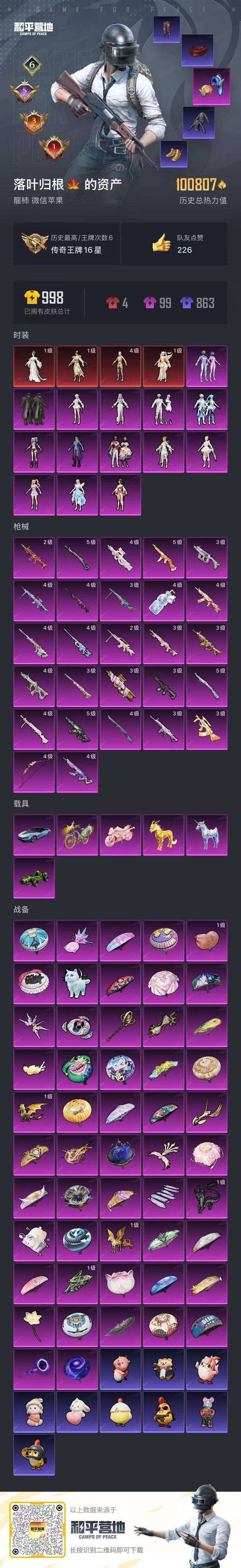 hs54884 苹果v-6王牌印记-4红装-14粉装-27特效枪-6载具-100867热力值-13