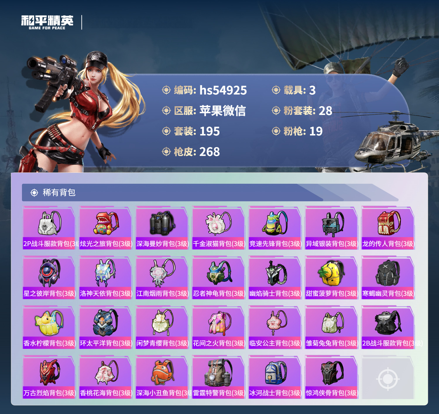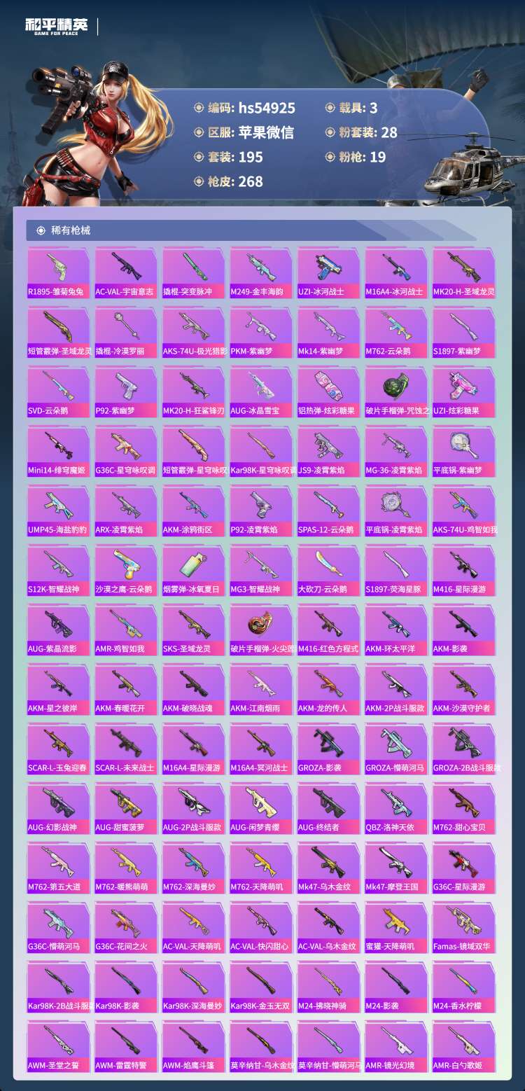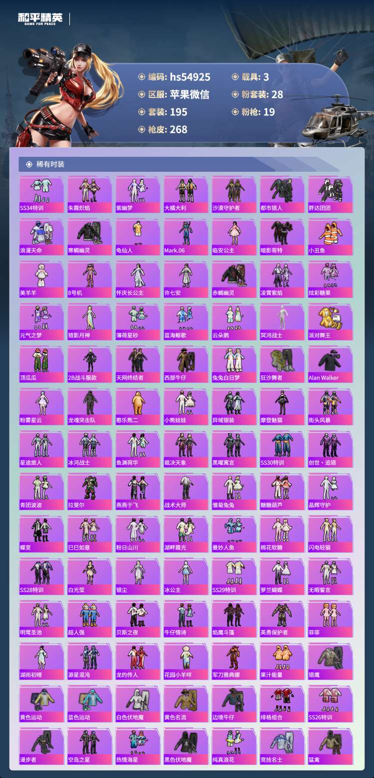 hs54925 苹果v-9王牌印记-有战神框-2红装-28粉装-19特效枪-3载具-108724热