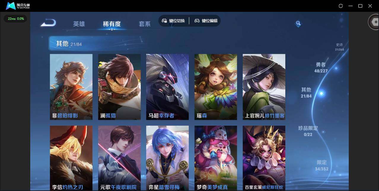 实名: 可修改 贵族等级: V4 英雄数: 100 皮肤数: 93 荣耀水晶: