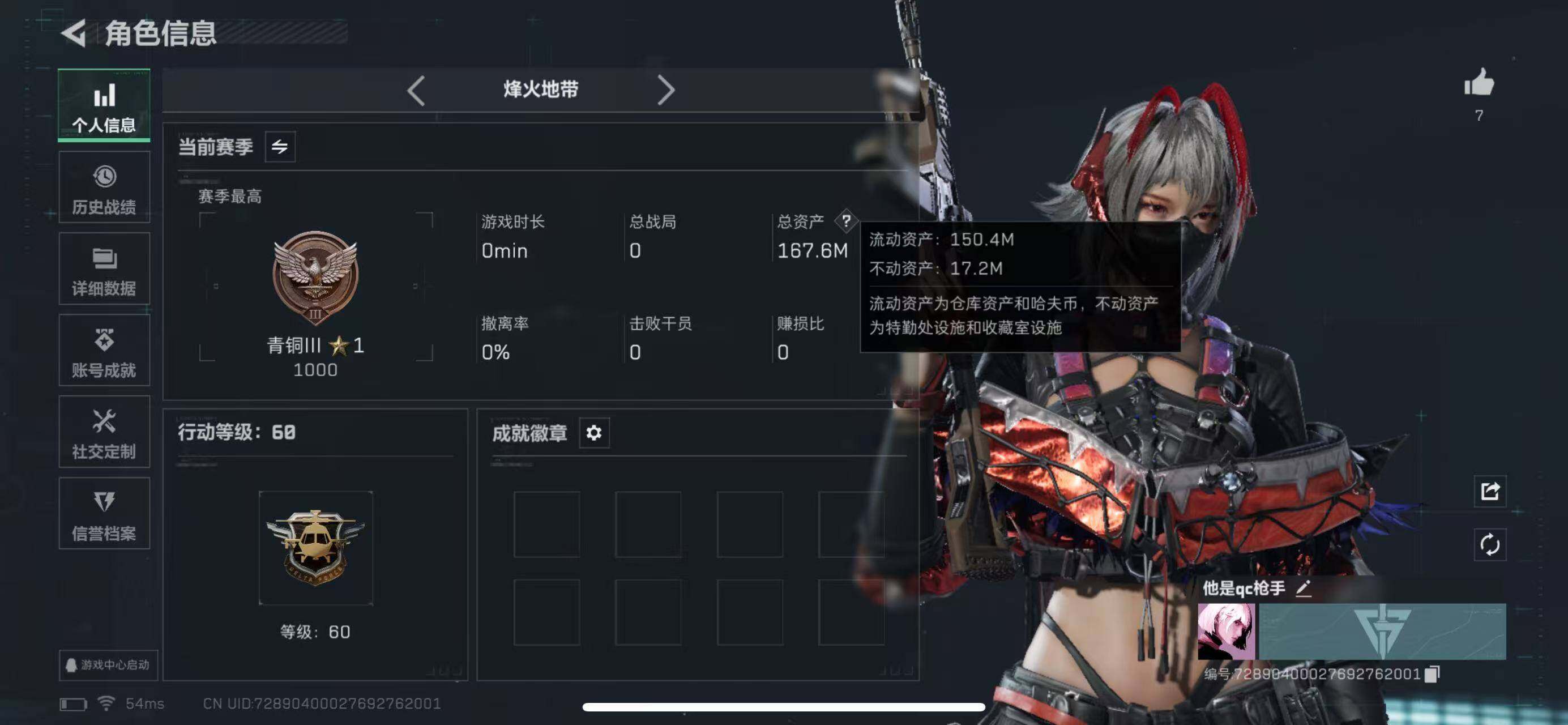 【SJ137】167m总资产-70340k哈伏币-60烽火等级-青铜-1战场等级-无军衔