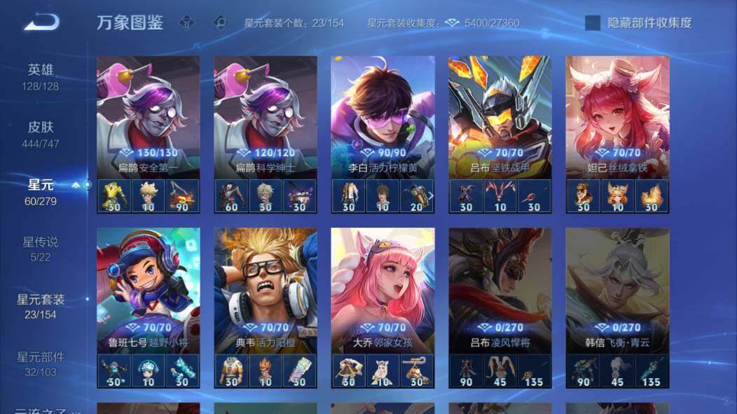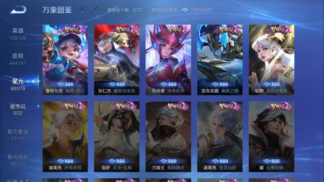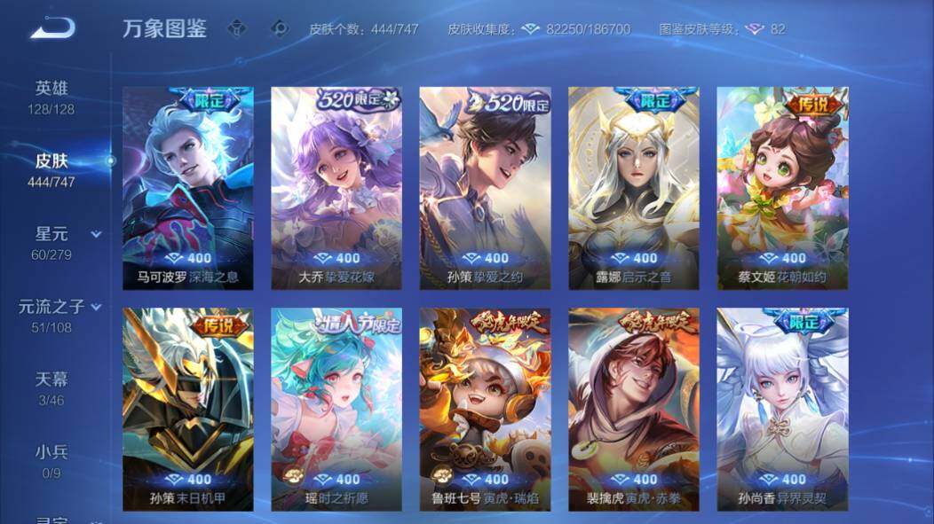 安卓Q-V10-128英雄-444皮肤-8典藏皮肤-1典藏英雄-1无双-44传说-142史诗-5星传说 虎年一套