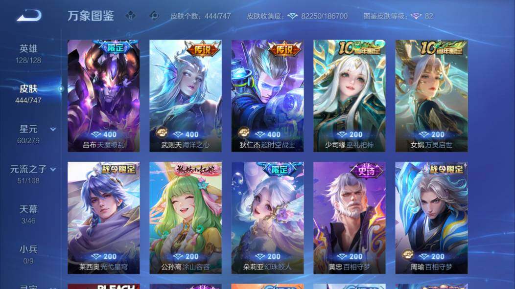 安卓Q-V10-128英雄-444皮肤-8典藏皮肤-1典藏英雄-1无双-44传