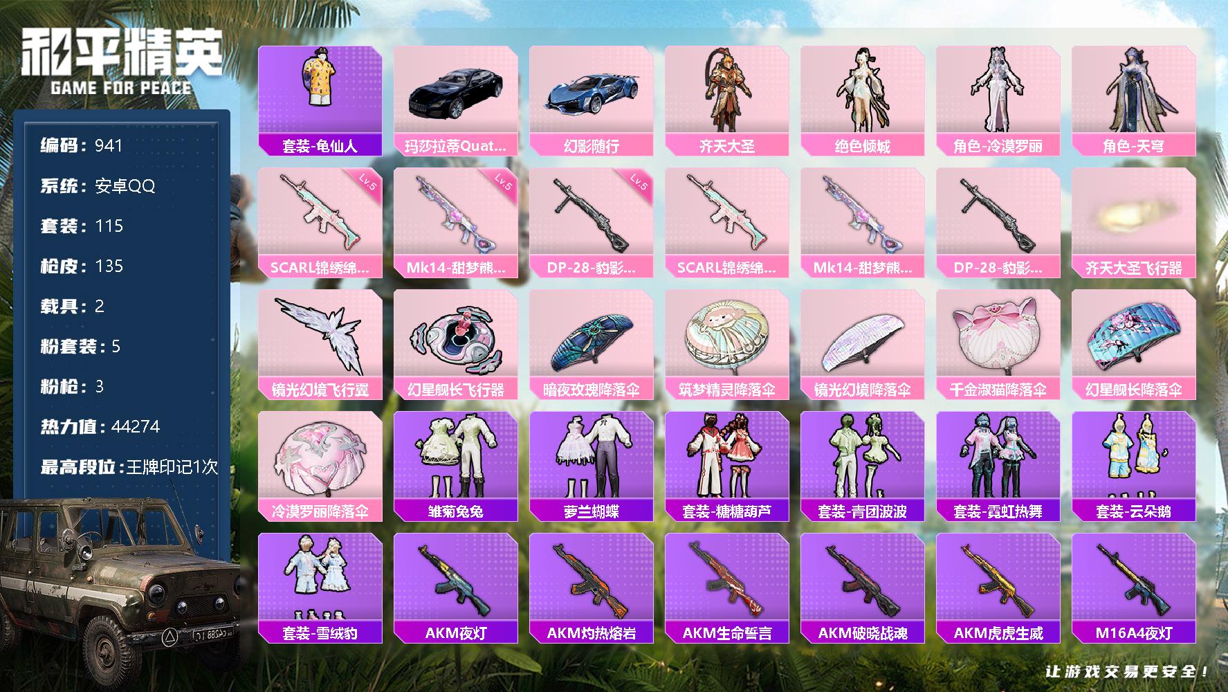 热力值43477 2载具 5粉 2特效枪 玛莎拉蒂Quattroporte(夜幕蓝) 幻影随行 满级