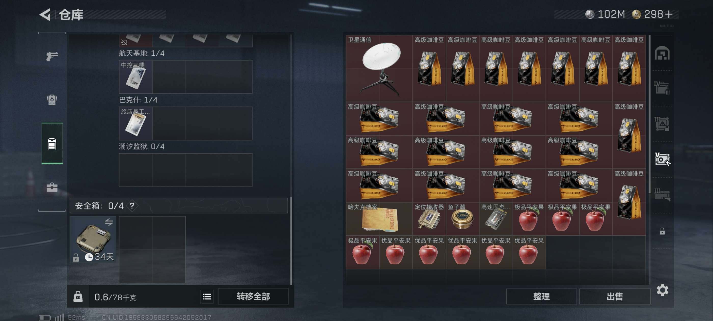163m仓库 102m纯币仓库无假账 21个咖啡豆 一个锅 仓库多六套和红 可二次