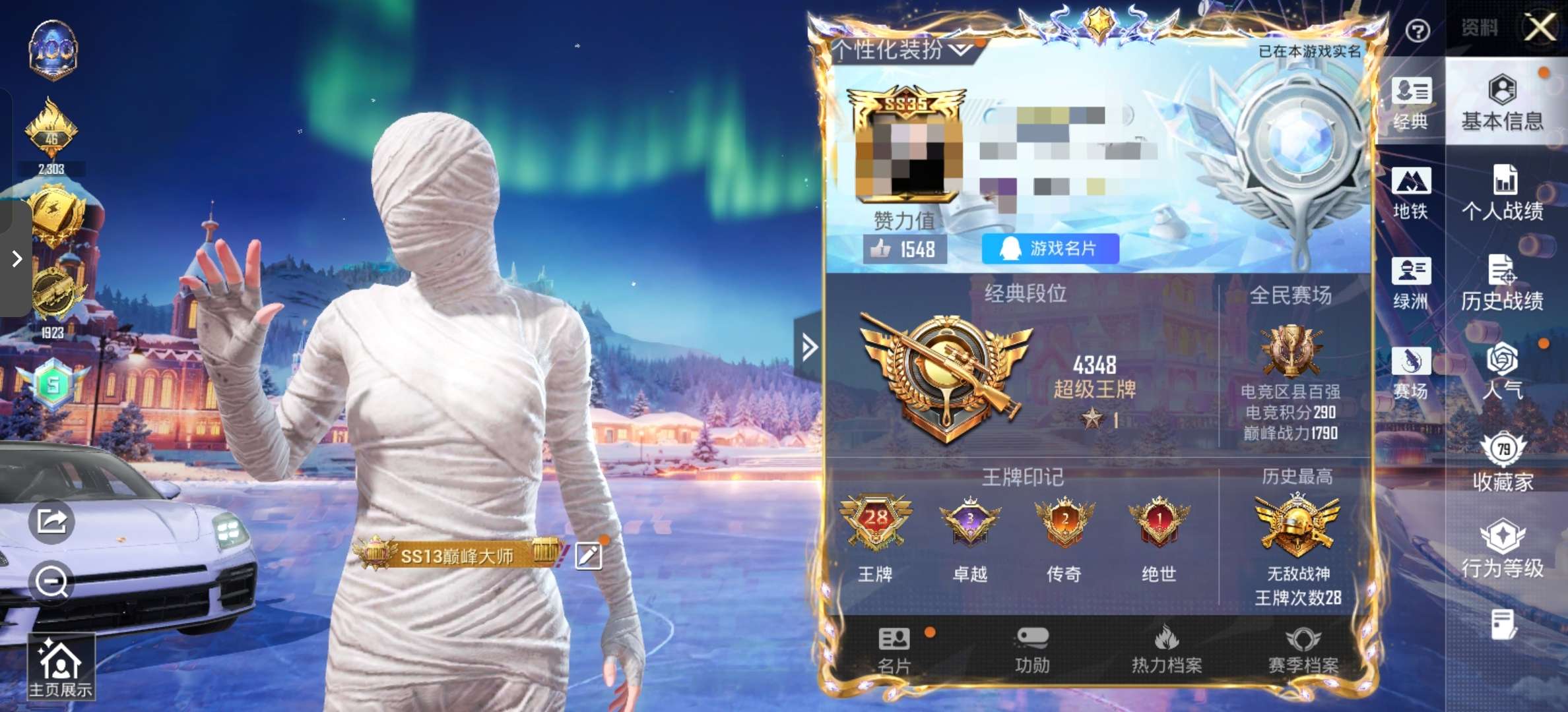 安卓,王者v9,450+皮肤4典藏,两个无双,和平精英35赛季战神,2车皮4升级枪+木乃伊不可改实名