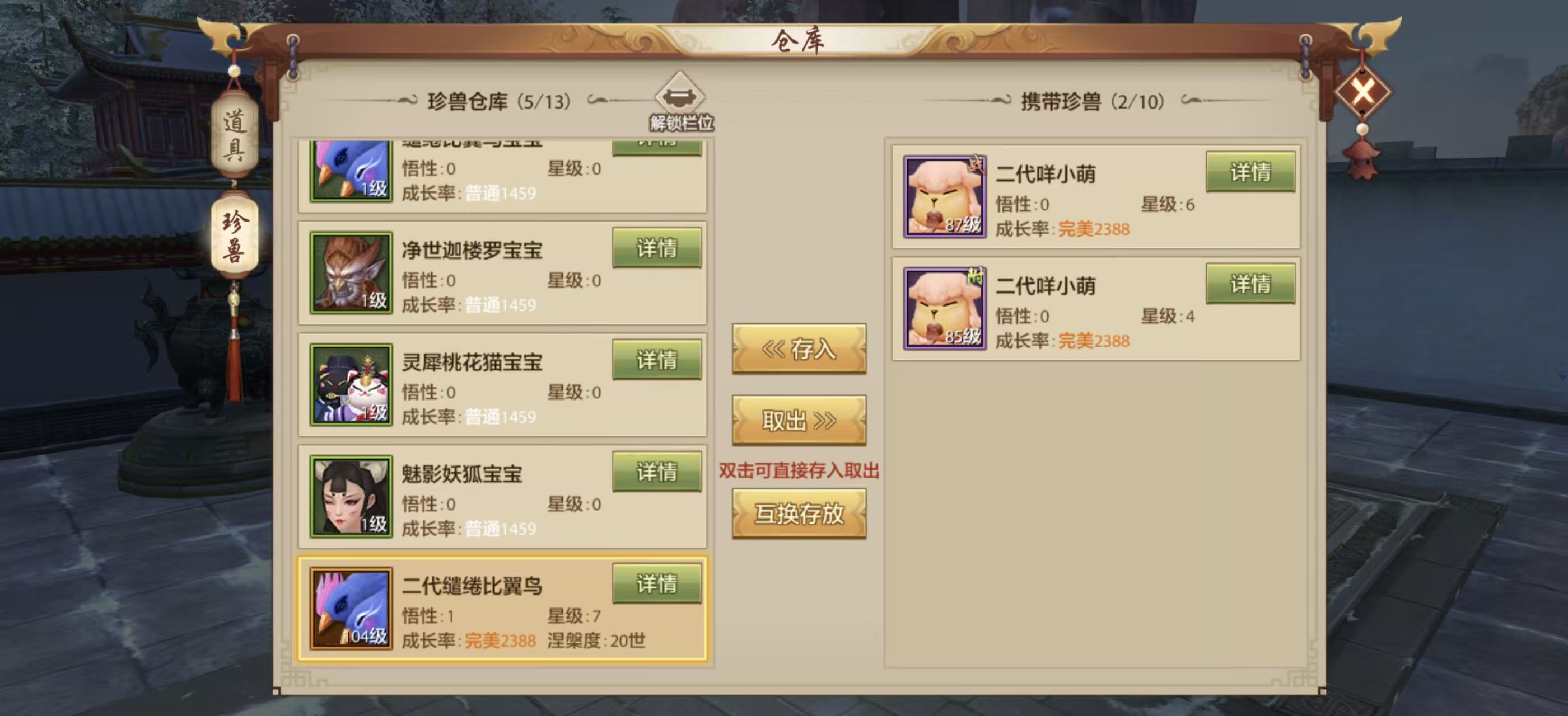 5000储备,20世神级火减抗特性,两只17世以上超级特性宠物,一只15世神级玄减,一只8世神级火减