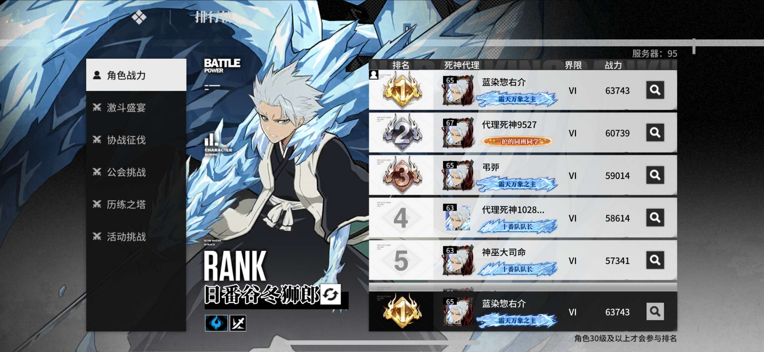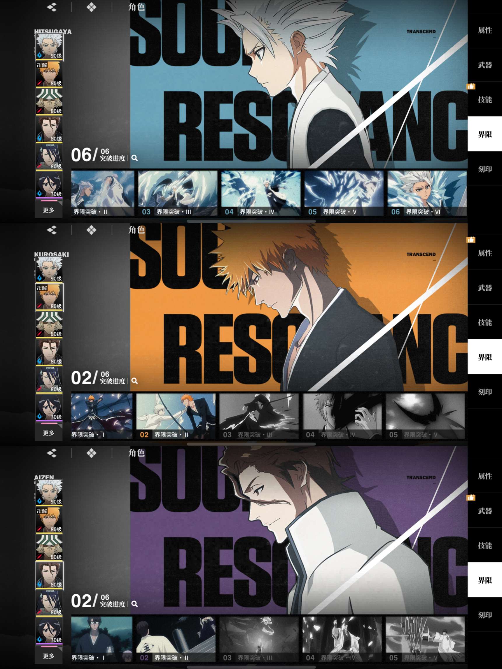 655小白211蓝染213一护232店长013白哉101命光头Sr角色基本全满命满武 6.3