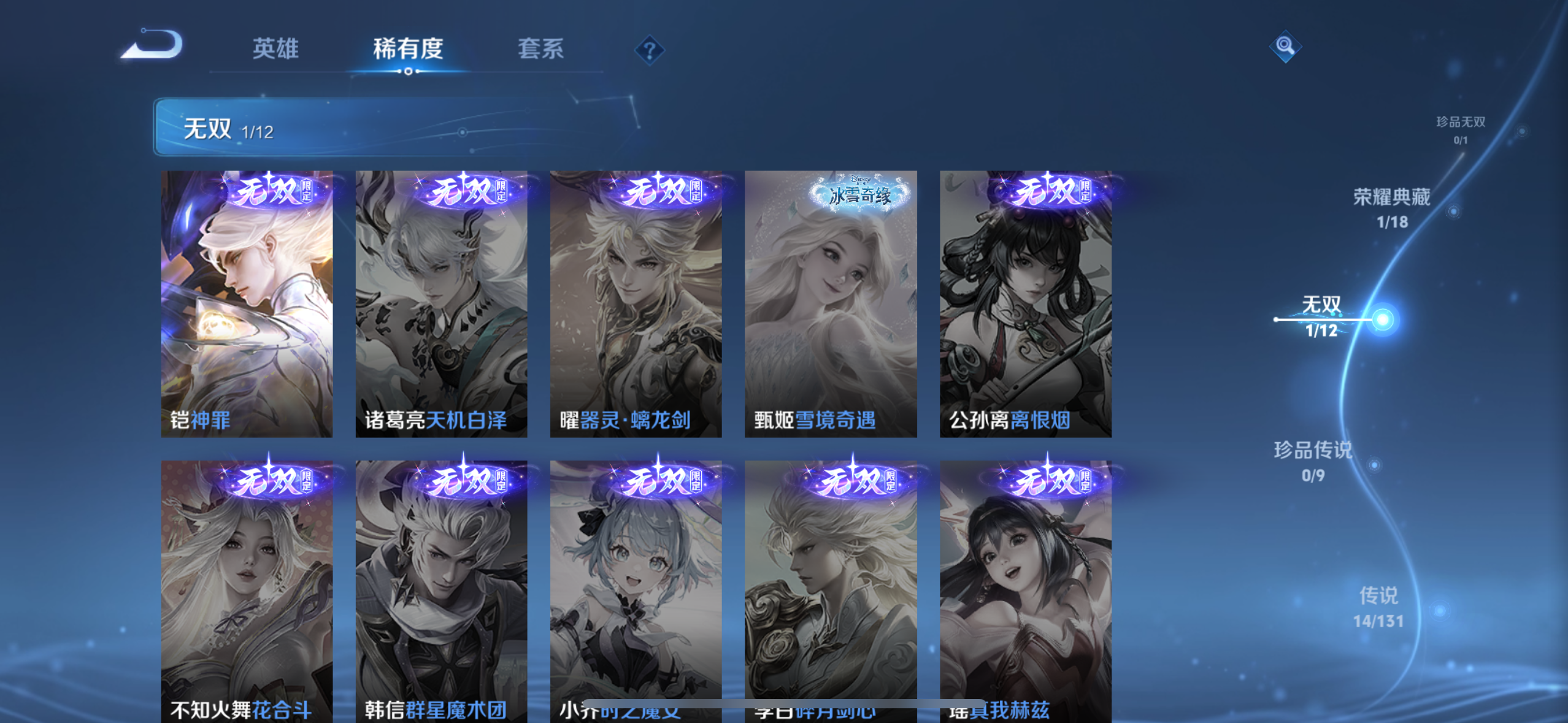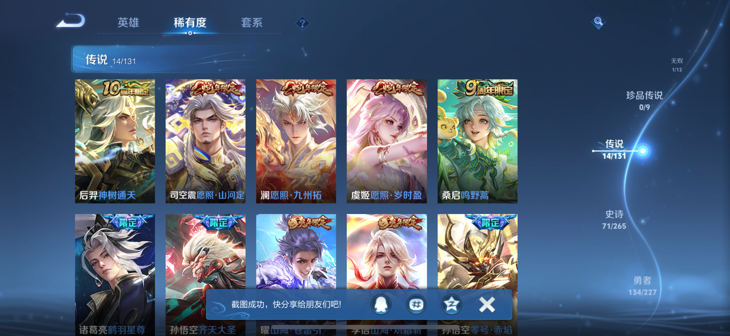 苹果QQ 皮肤261 英雄127 典藏1 无双1 传说14 其他皮肤102 倔强青铜-急出孙悟空至尊宝大圣娶亲