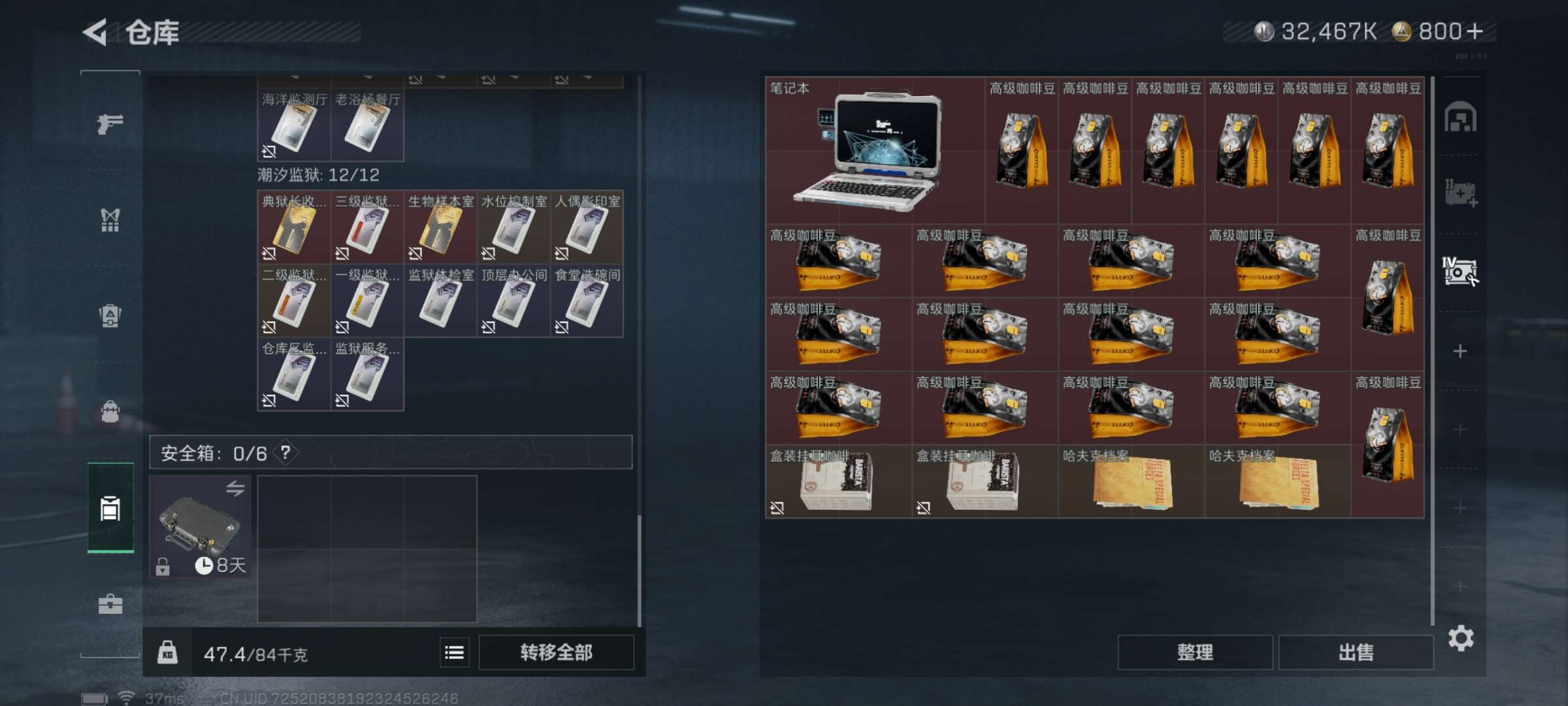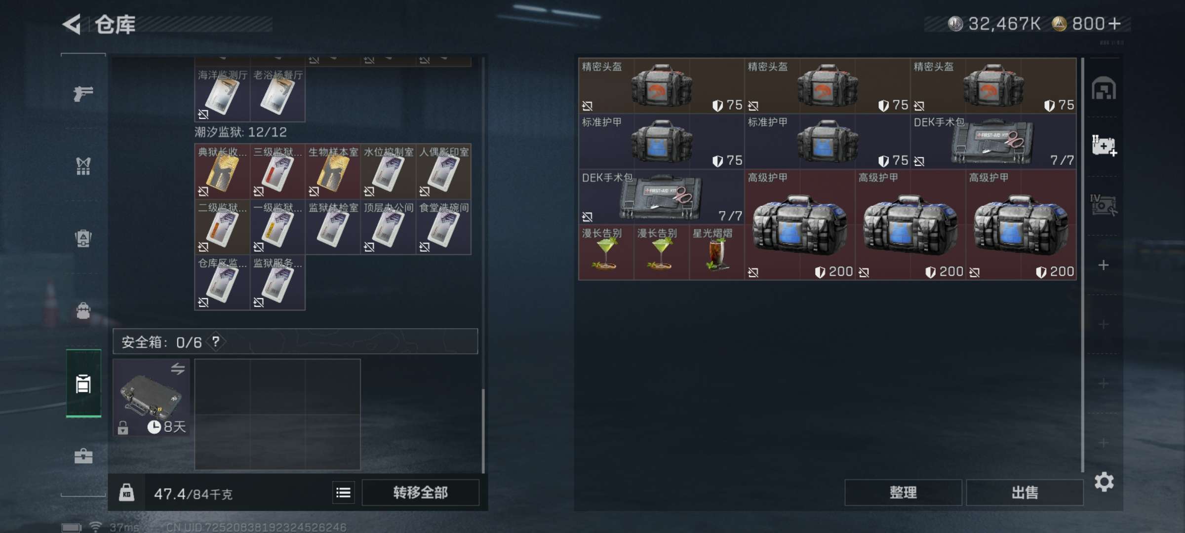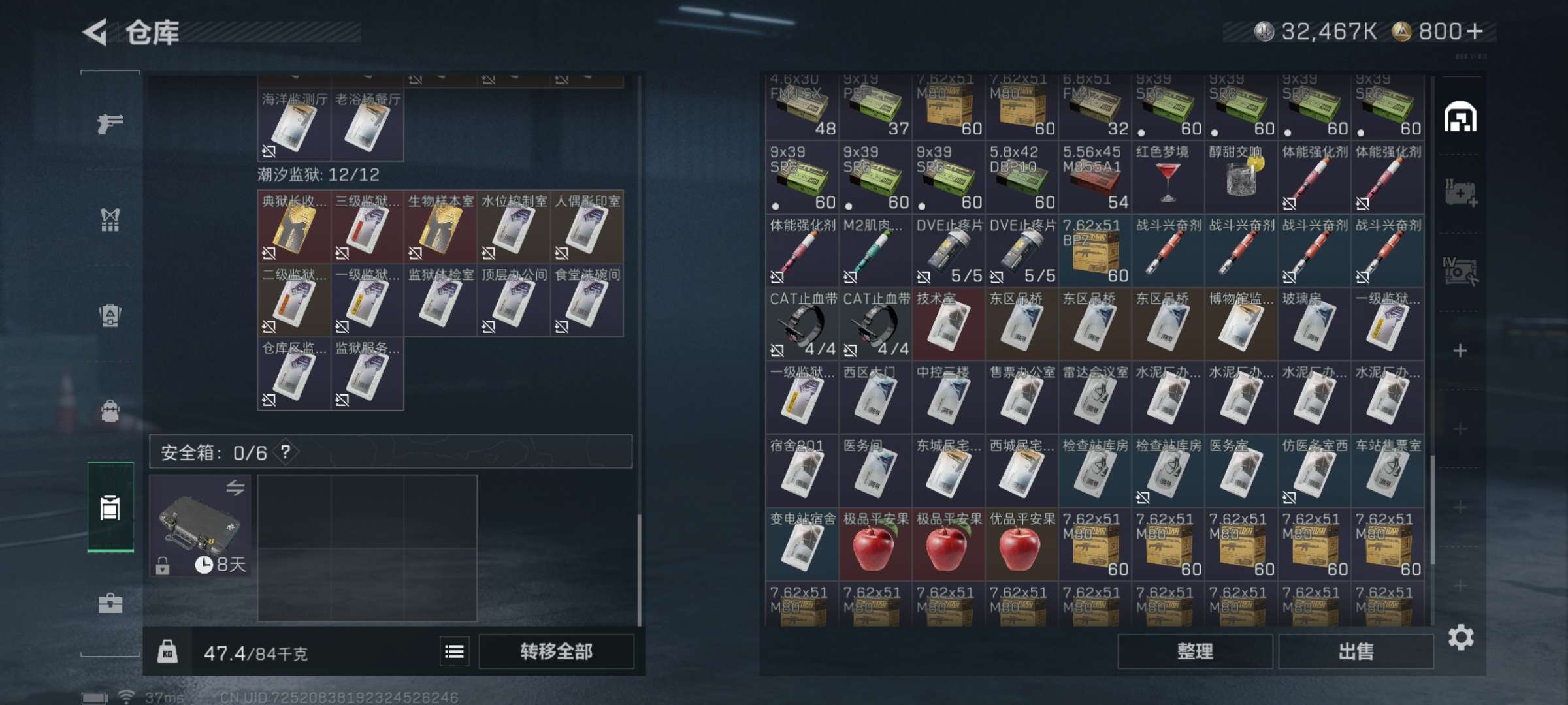 197M仓库!流动资金173M!全地图钥匙全有!耐久基本全新!还有一些6套!七级仓库满级体力六级负重