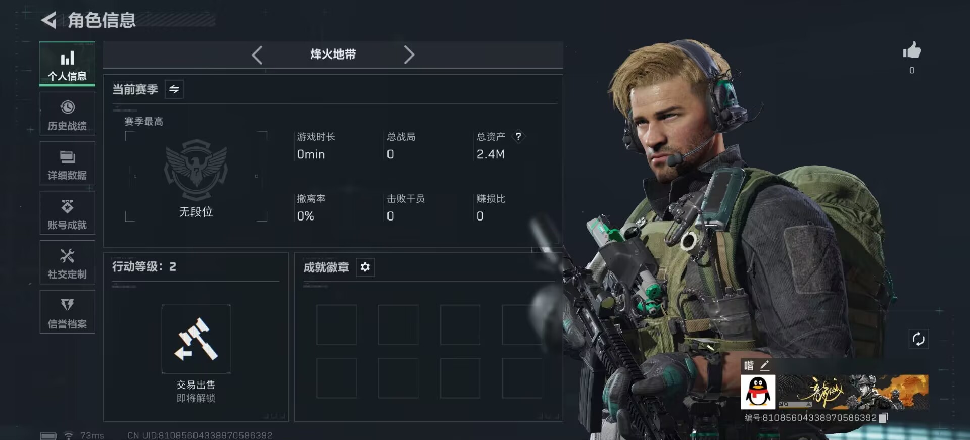 三角洲ID喈,小白号,带qq一起出,无实名