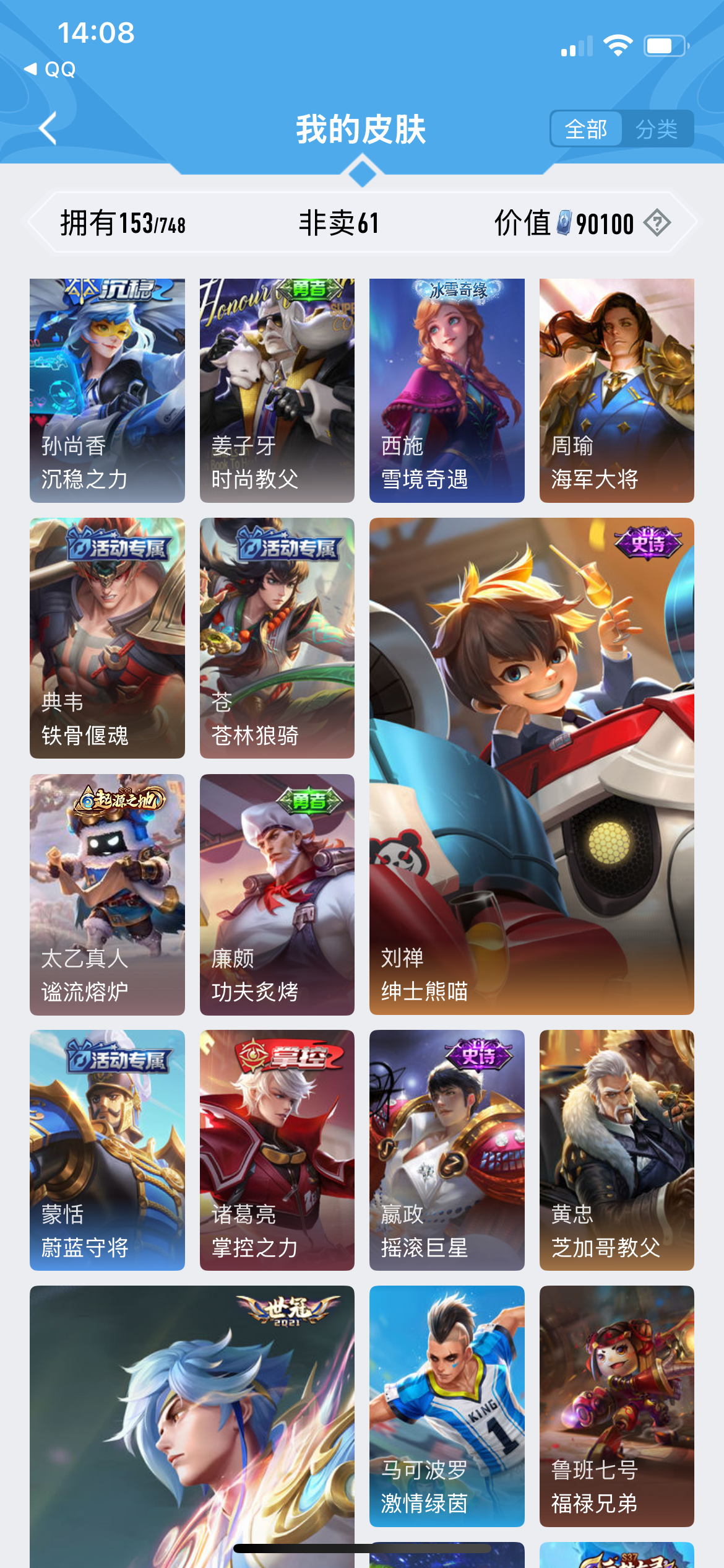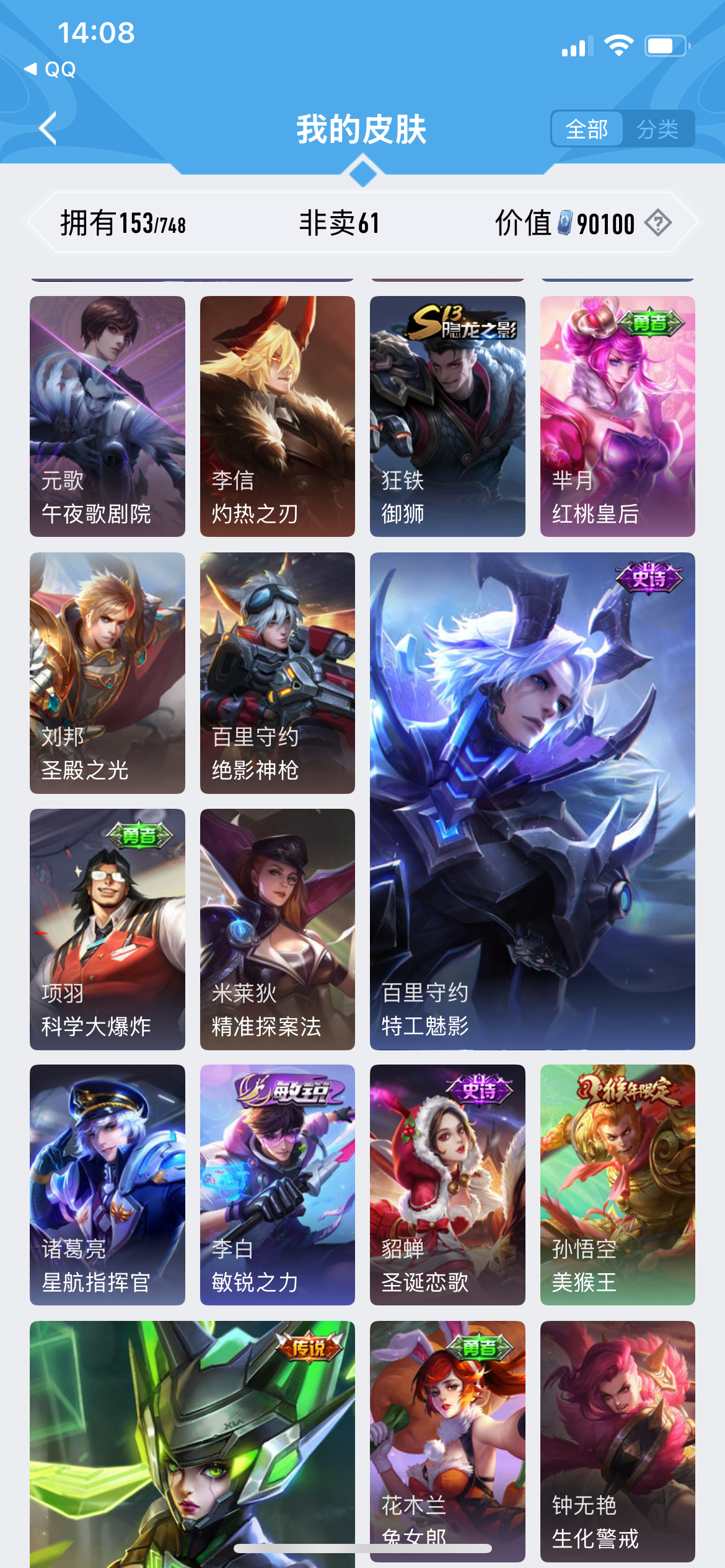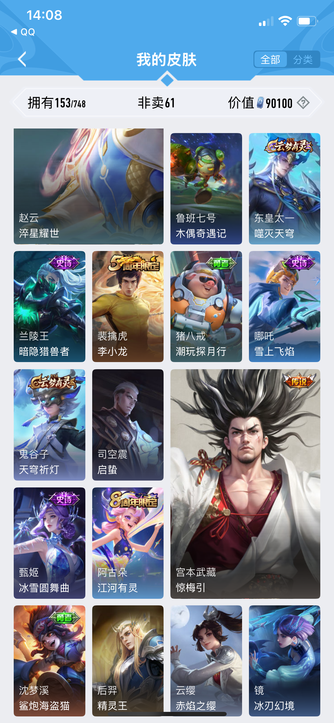 安卓QQ 皮肤153 英雄124 传说5 其他皮肤57 永恒钻石-王者号卖出,价格好谈要的来
