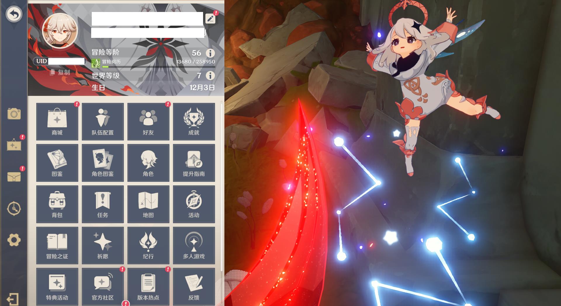 56级/17黄/女主/12个五星角色/3个五星武器/阿蕾奇诺