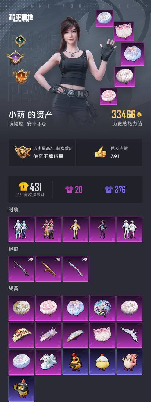 【AZH1965】安卓 手Q【猪脸糯粉咩咩红熊茄茄 满级甜心宝贝AKM】5粉装-3特效枪-0载具-2粉色飞行器-33466热力值-5王牌印记-80套装-94枪皮