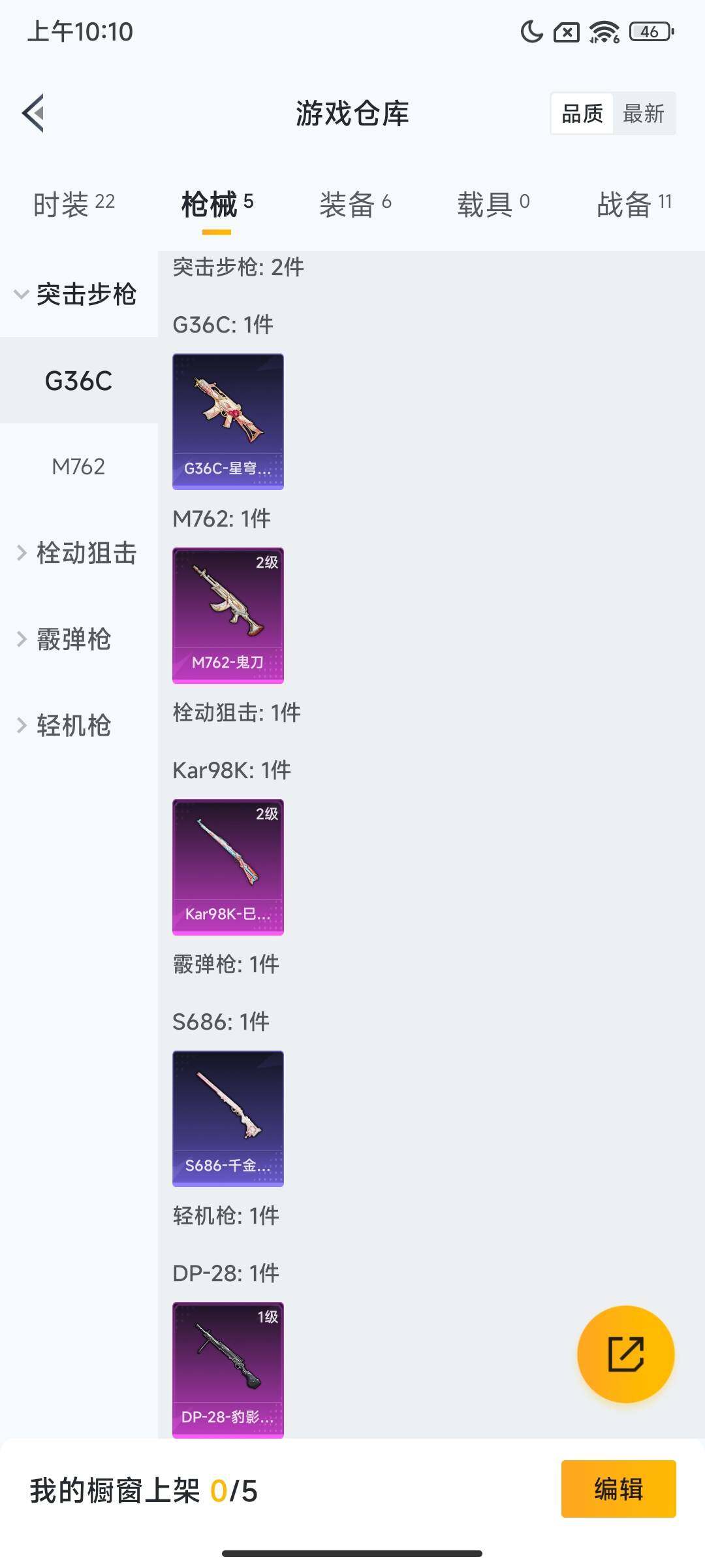 【粉色枪皮等级】:M762-鬼刀(二级),Kar98K-巳巳如意(二级),DP-28-豹影疾电(一级)