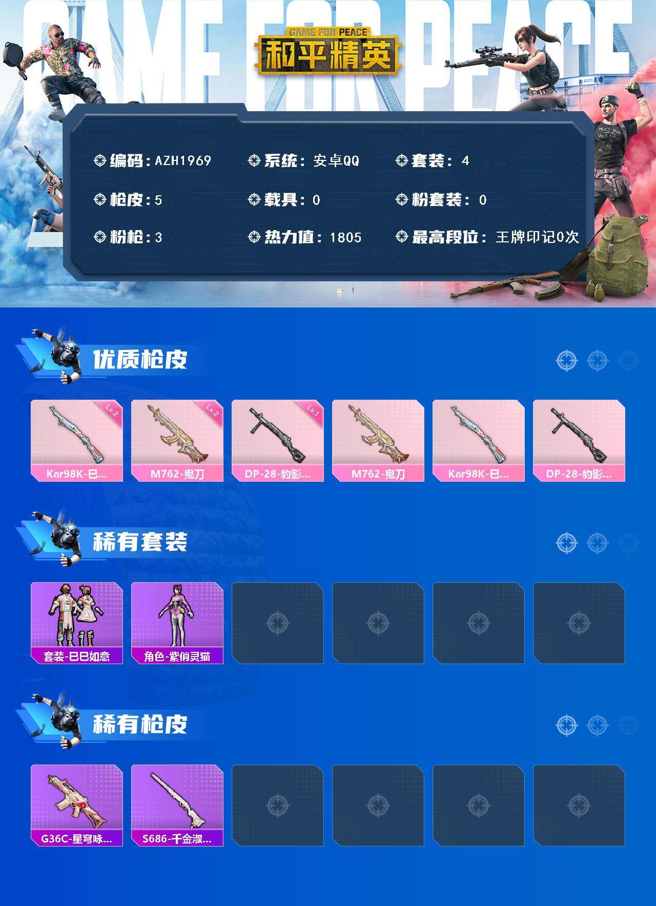 【AZH1969】安卓 手Q【二级M762-鬼刀】0粉装-3特效枪-0载具-0粉色飞行器-1805热力值-0王牌印记-4套装-5枪皮