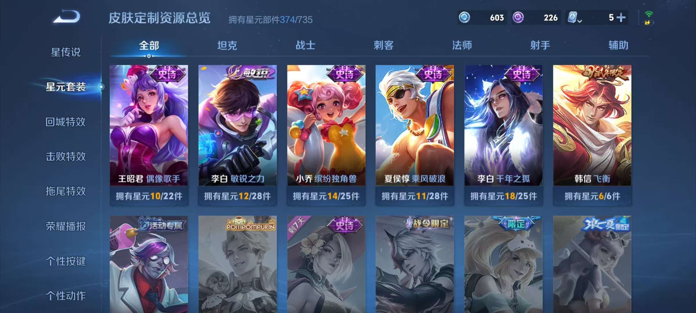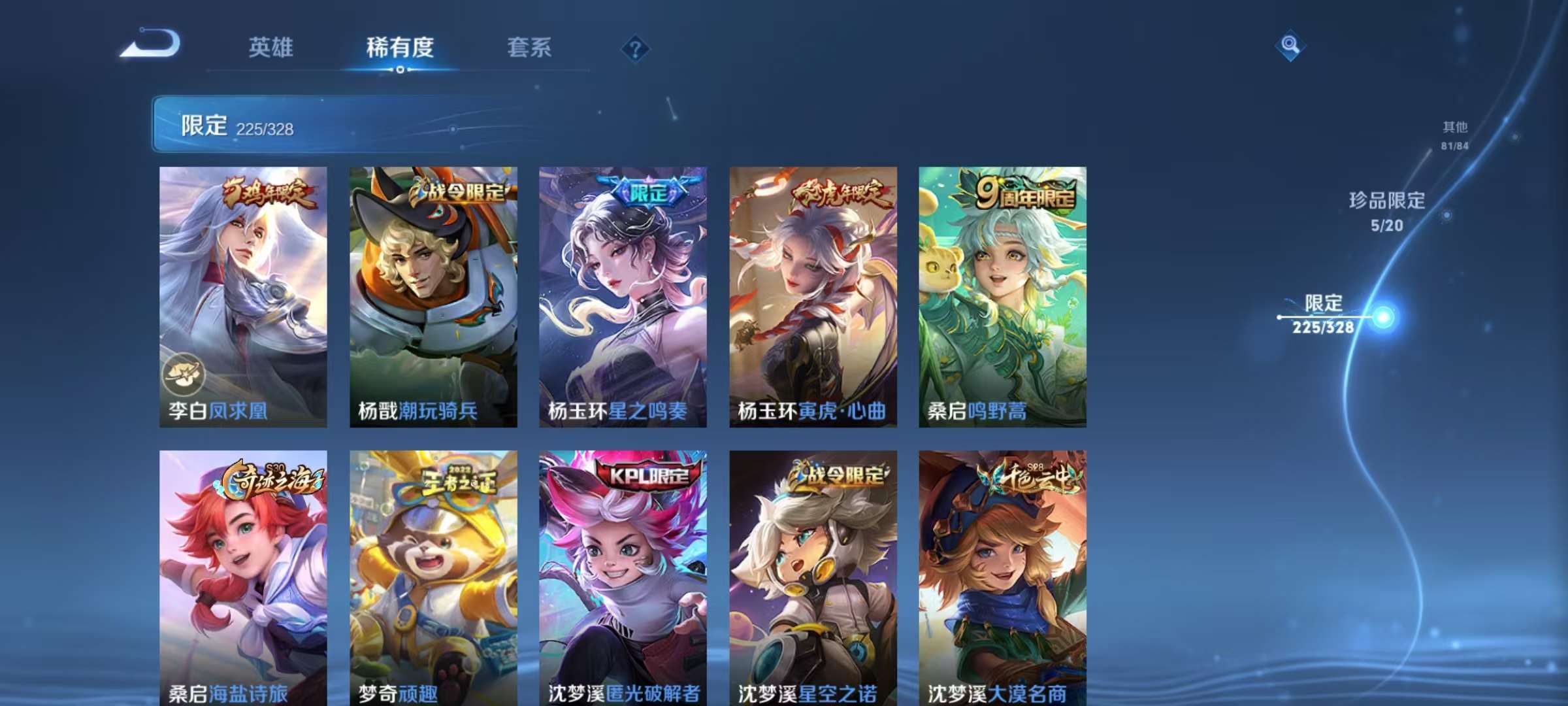 安卓QQ 皮肤553 英雄127 典藏7 无双1 珍品传说4 传说88 其他皮肤221 永恒钻石-