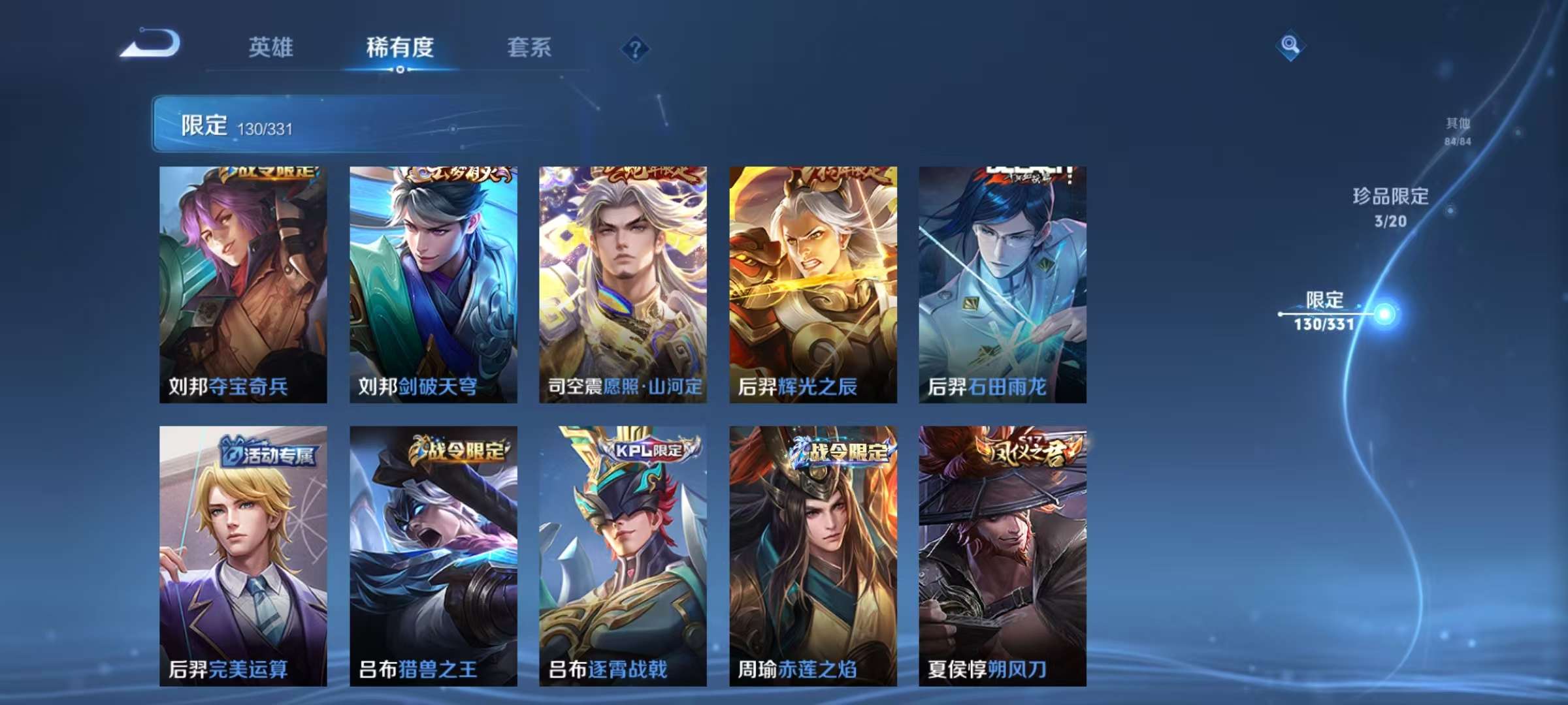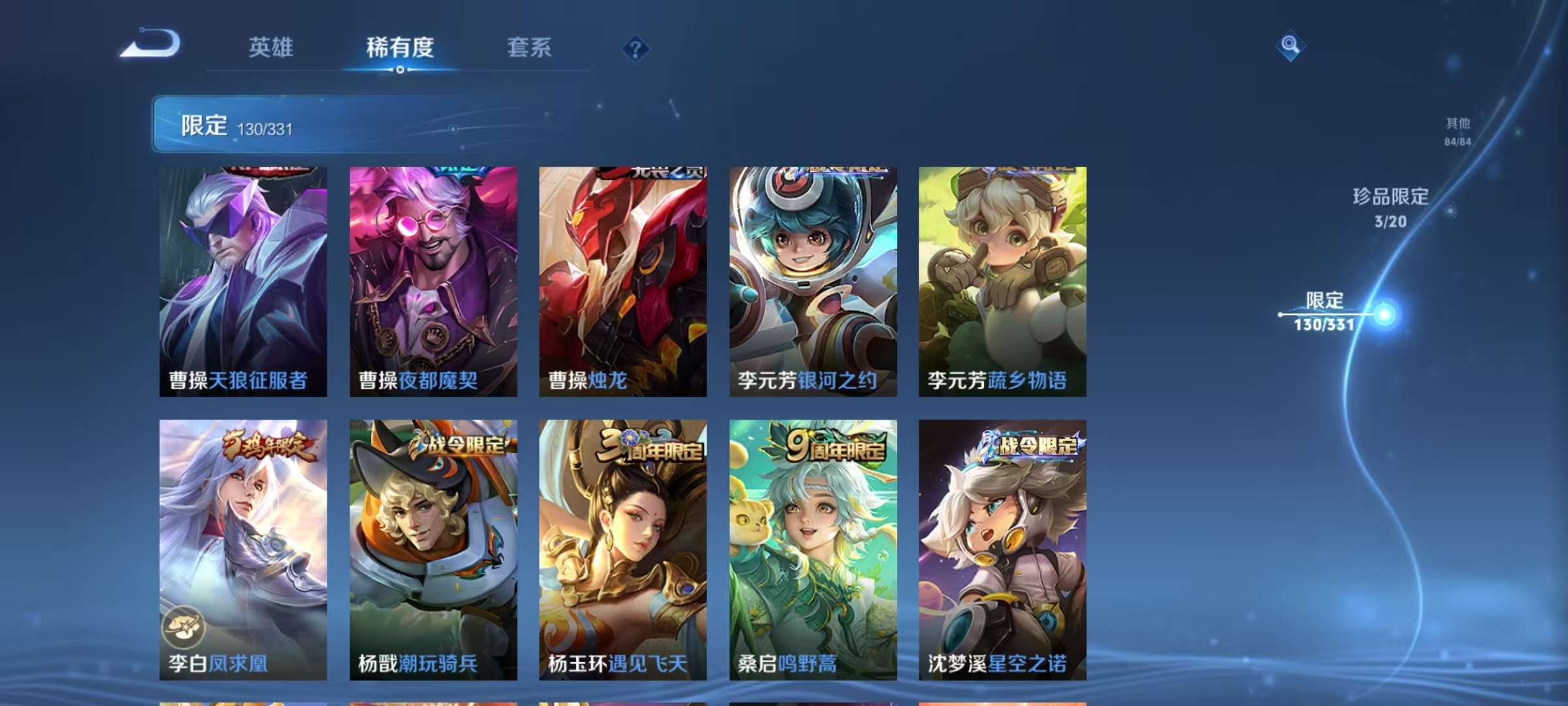 安卓QQ 皮肤407 英雄126 典藏6 珍品无双1 无双1 珍品传说1 传说36 其他皮肤151 永恒钻石-