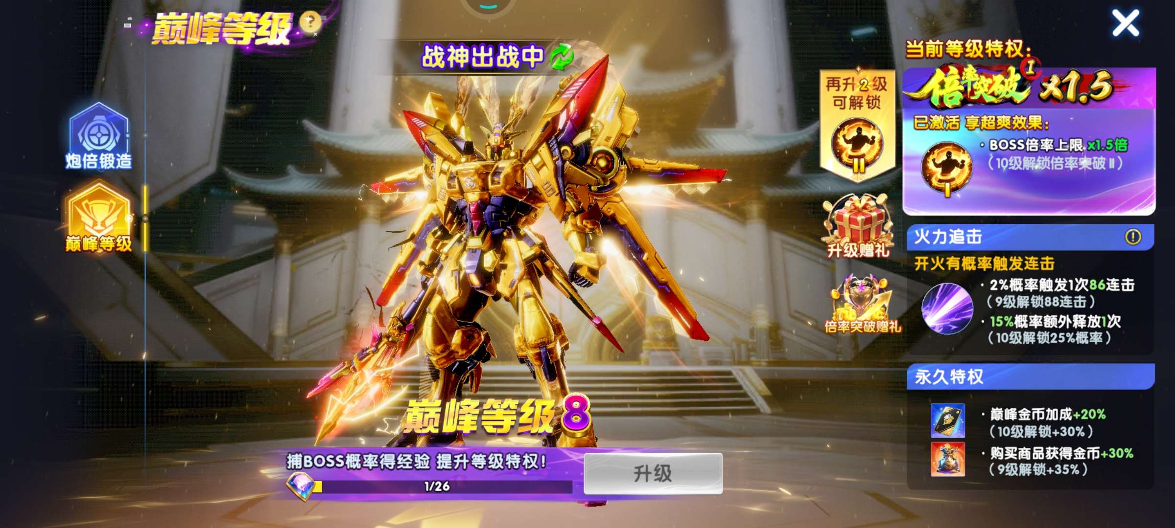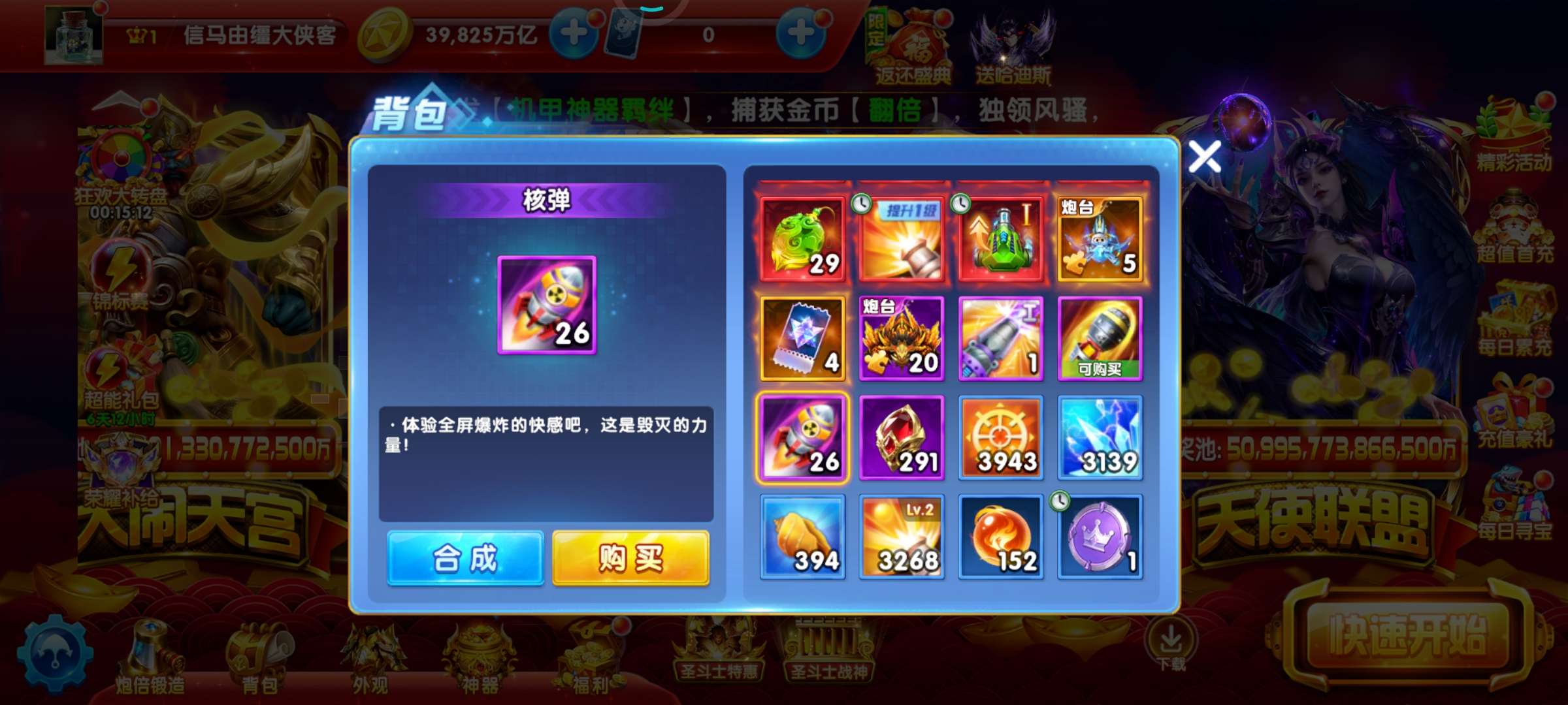 398万亿 实60炮 虚70炮2天 吕布2天 超能2天 巅峰8级 加速翅膀4天 狂暴3268核弹26