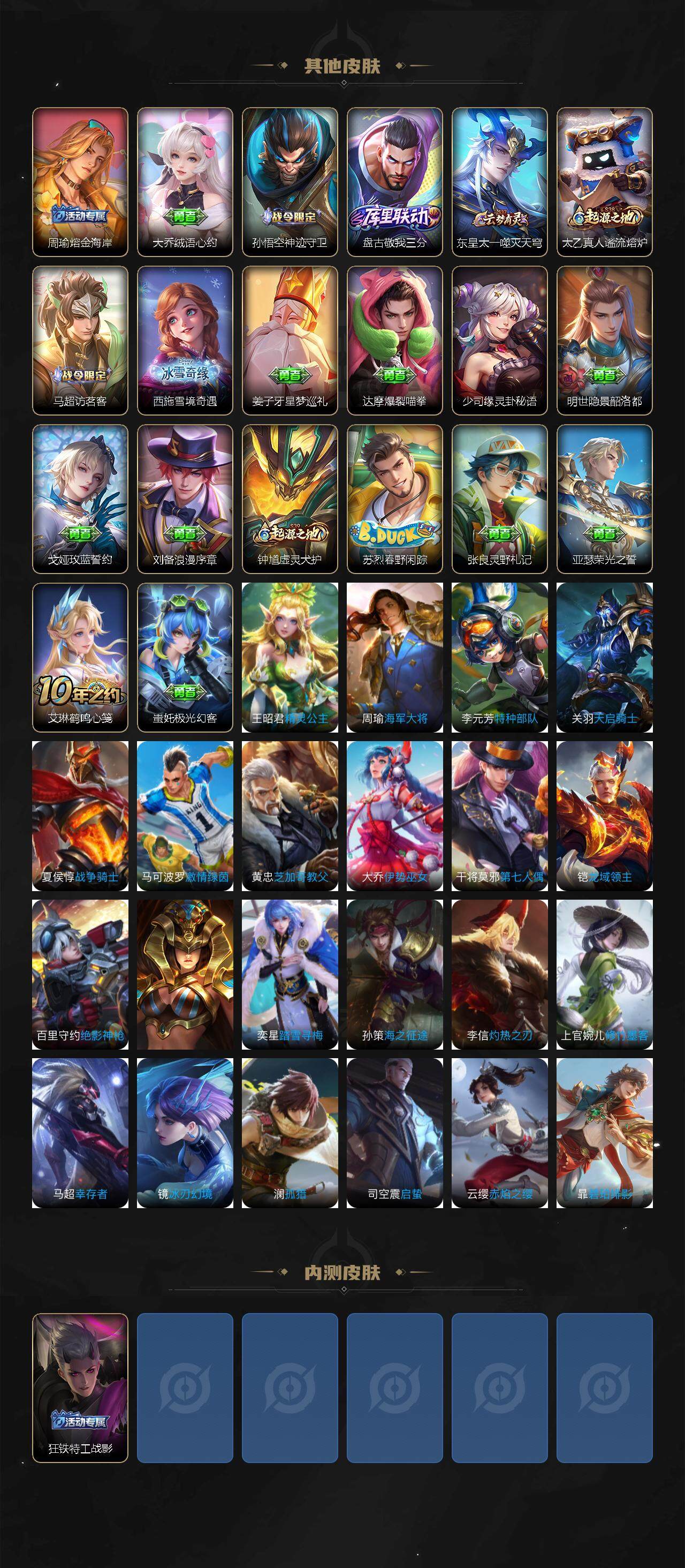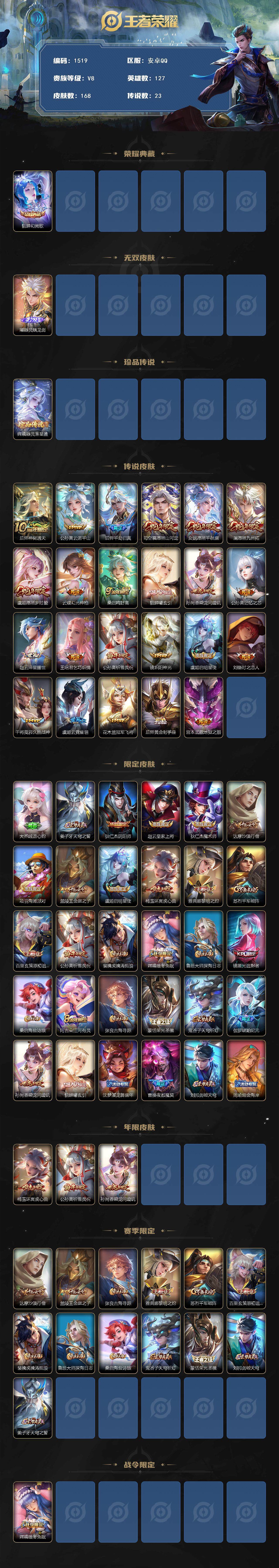 皮肤168 英雄127 荣耀典藏1 无双皮肤1 珍品传说1 传说23 其他皮肤52-