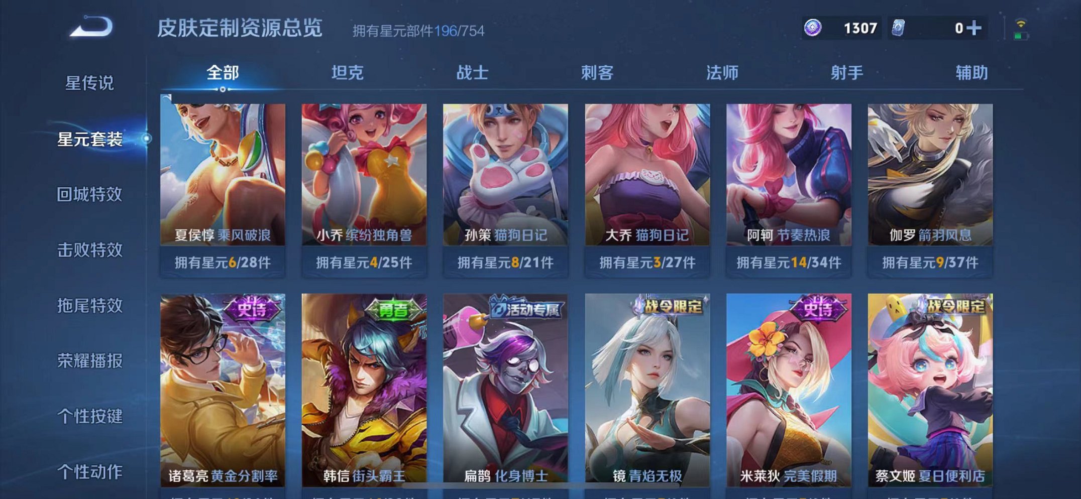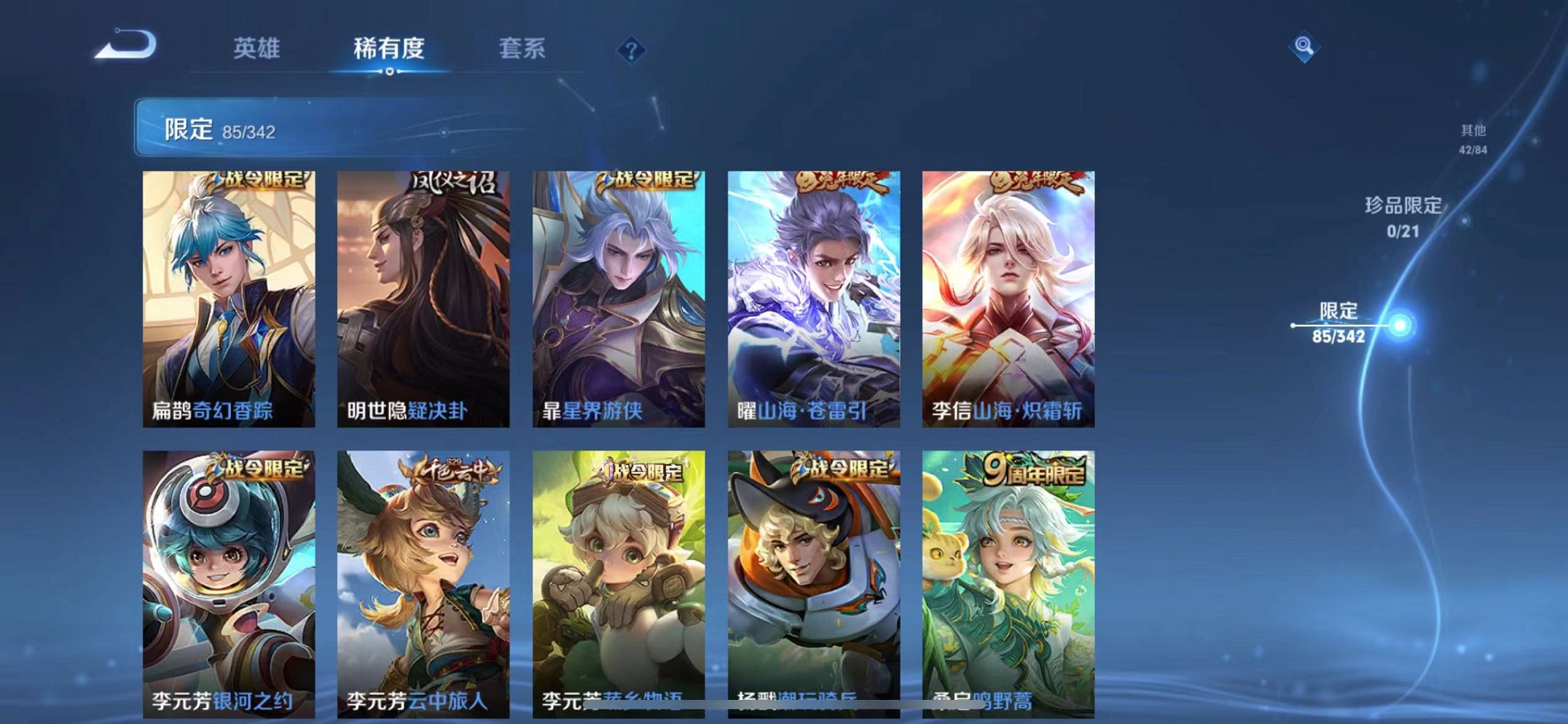 皮肤295 英雄124 永恒钻石 荣耀典藏1 传说39 其他皮肤117-