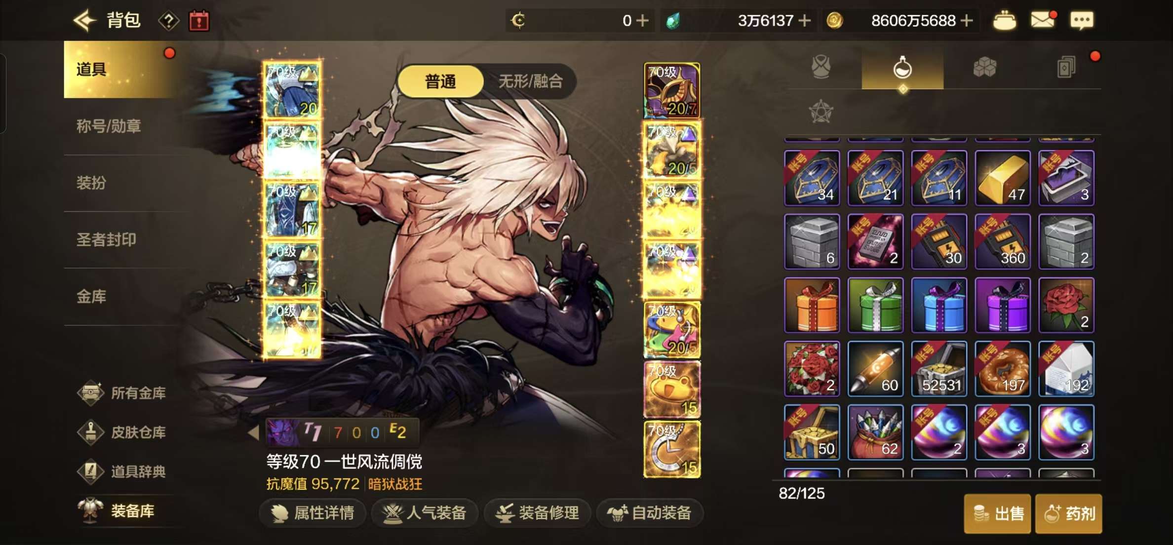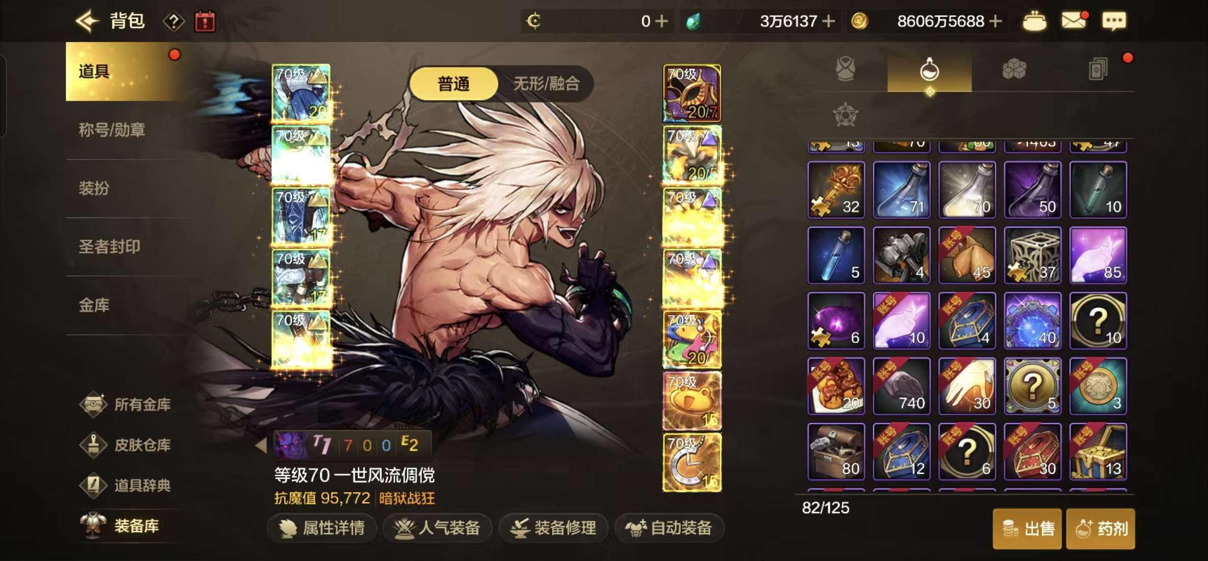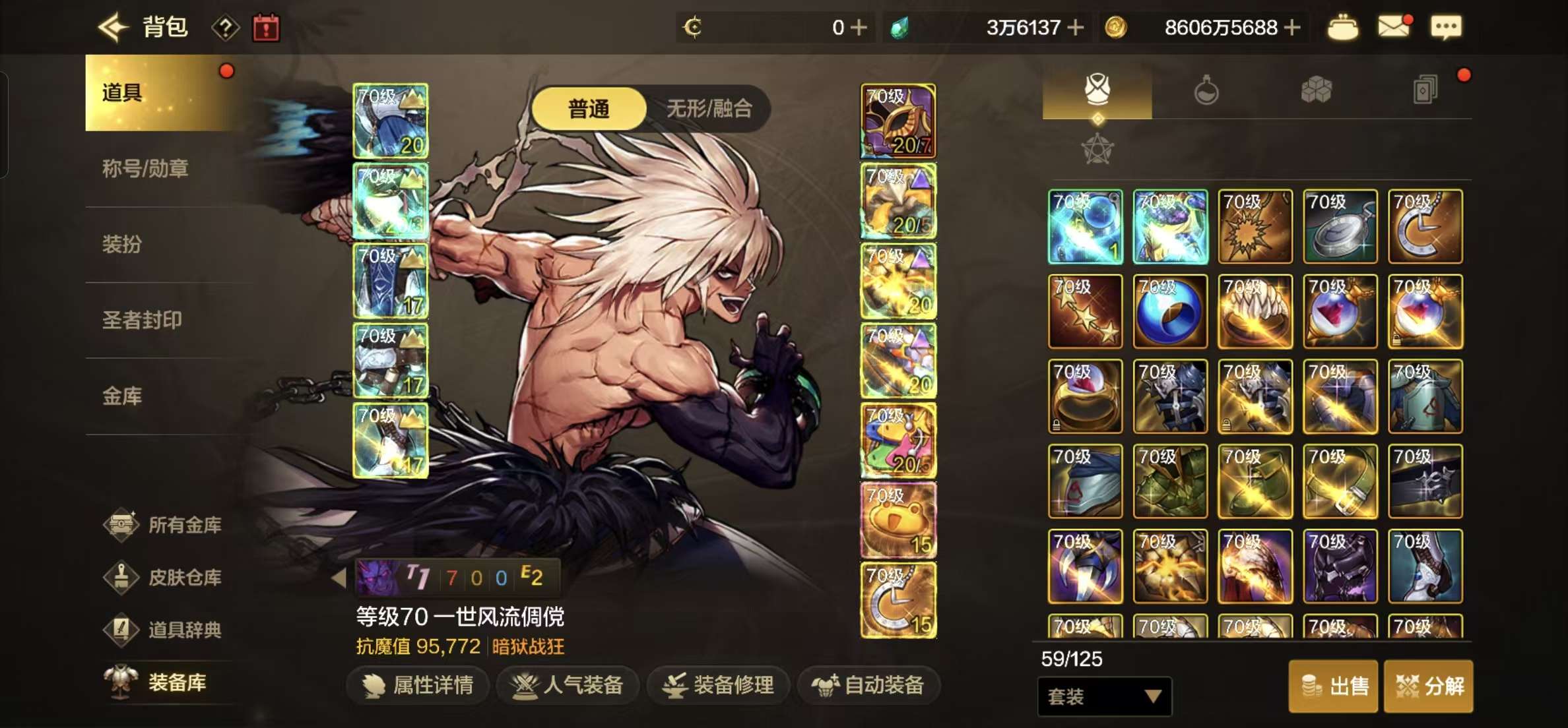 狂战,武器荒古巨剑 抗魔100272,多角色已70具体看