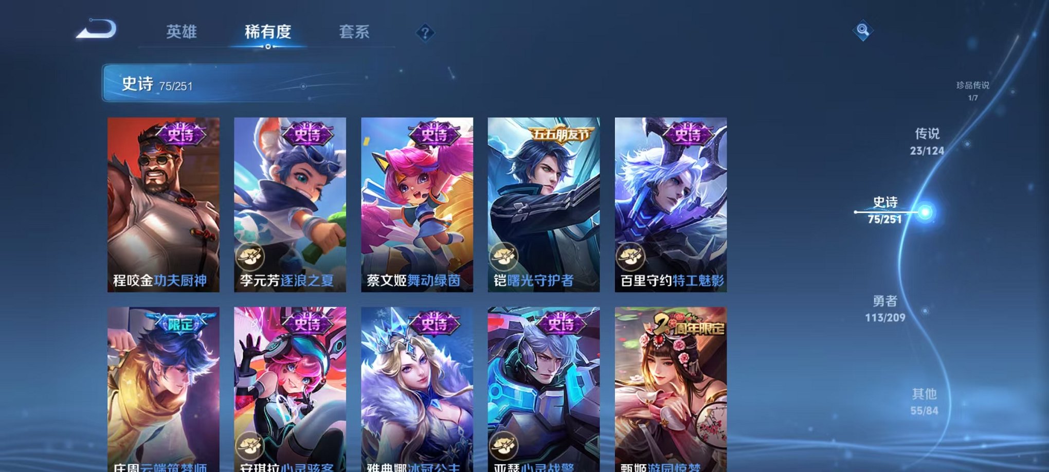 安卓QQ 皮肤270 英雄124 典藏4 珍品传说2 传说23 其他皮肤88 最强王者-