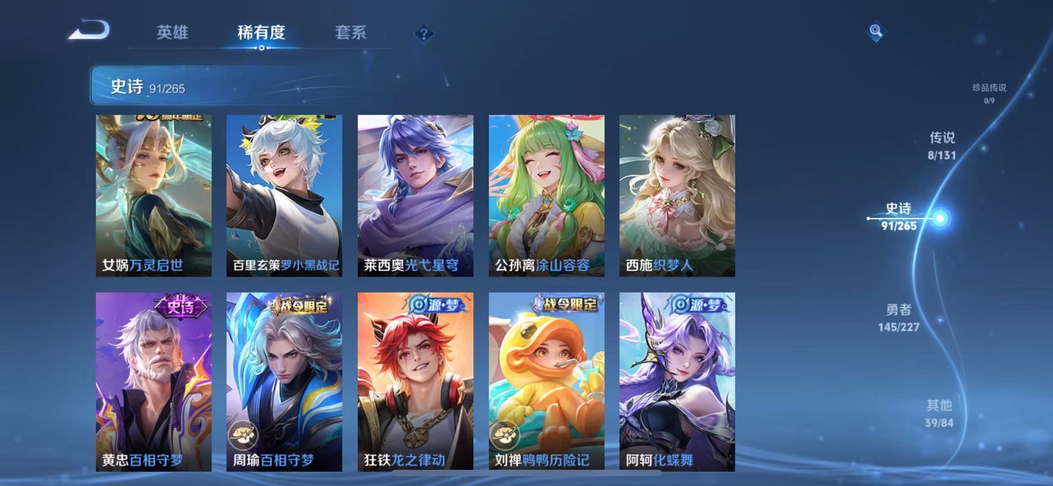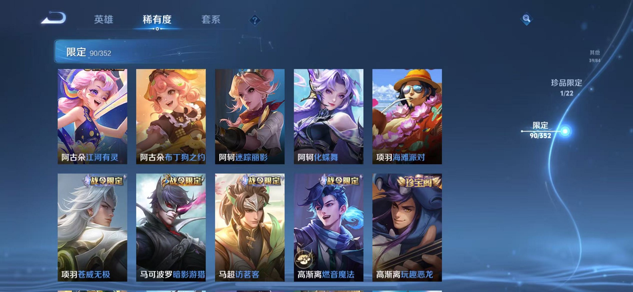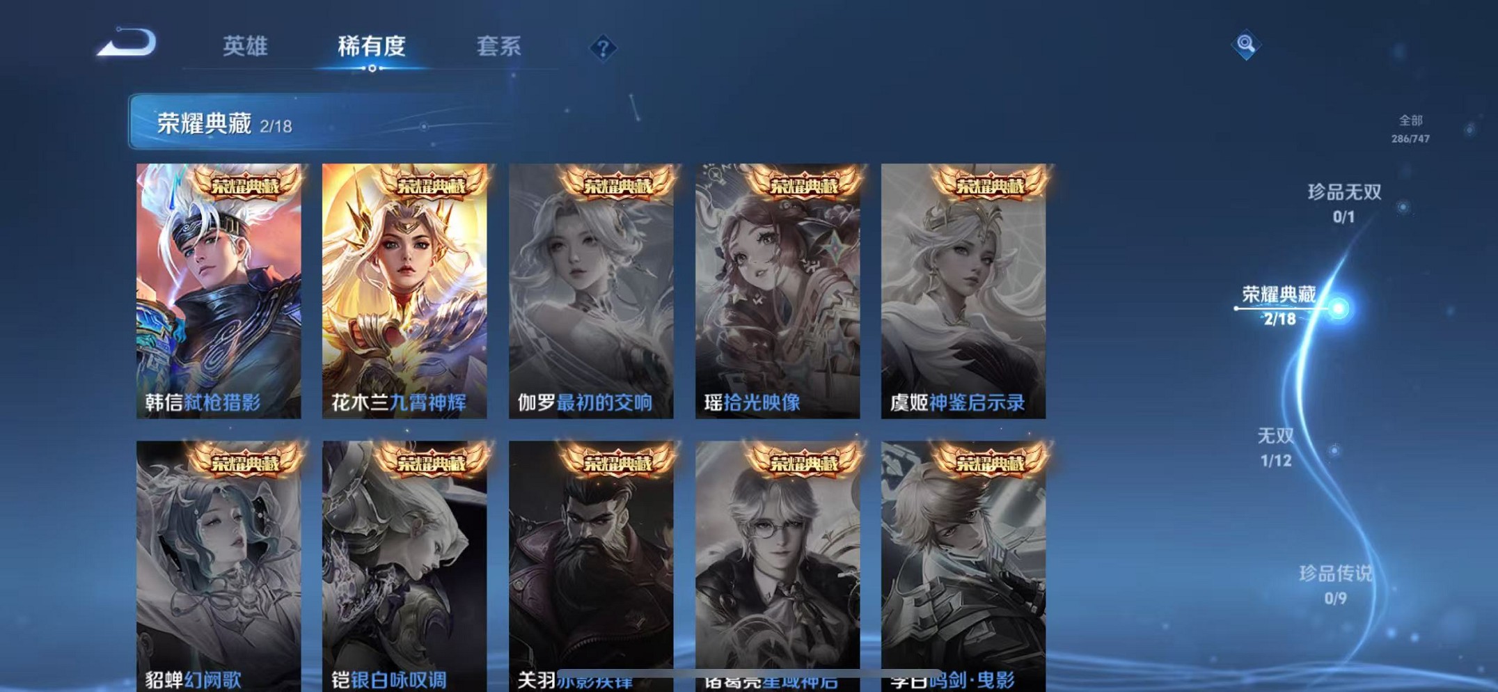 苹果QQ 皮肤286 英雄128 典藏2 无双1 传说8 其他皮肤99 绝世王者-