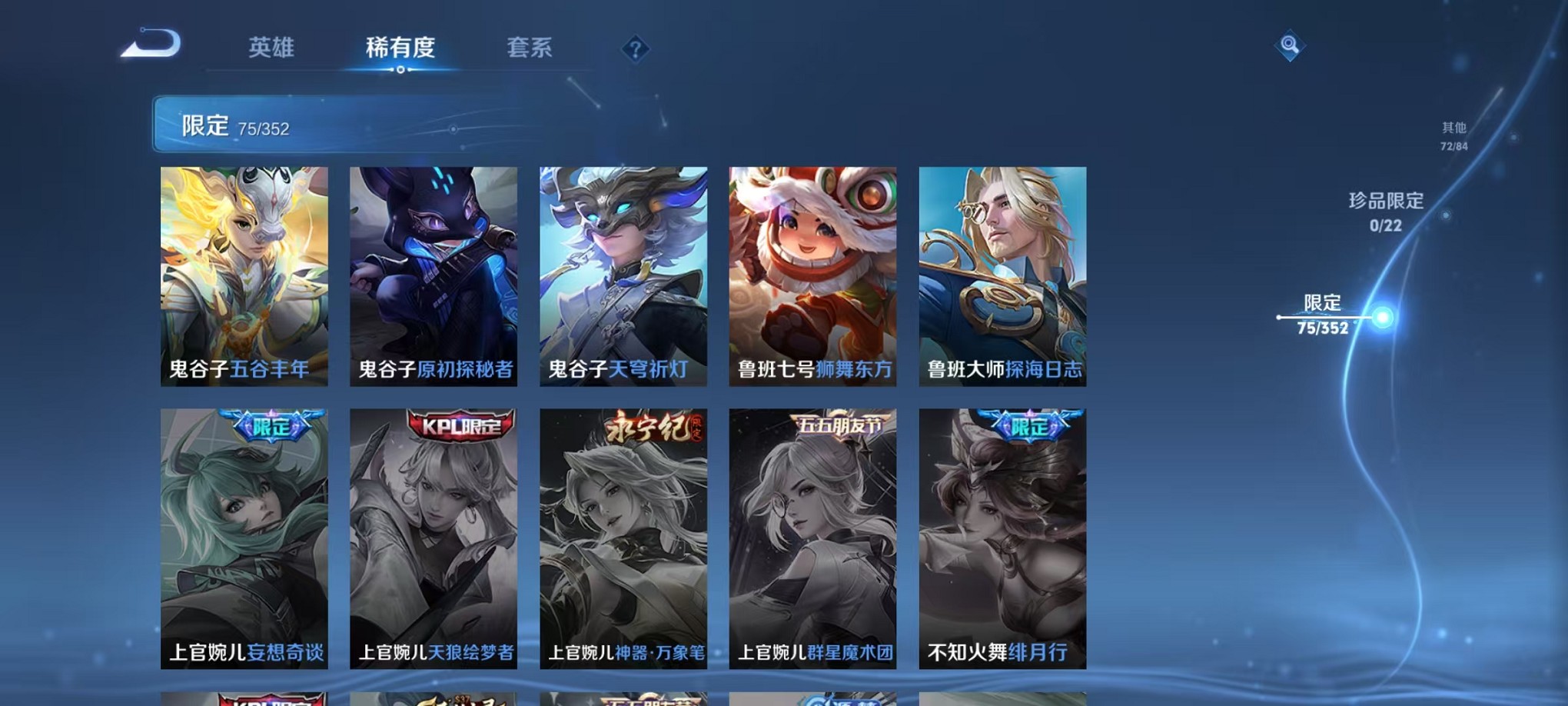 安卓QQ 皮肤272 英雄127 典藏2 传说11 其他皮肤107 至尊星耀-