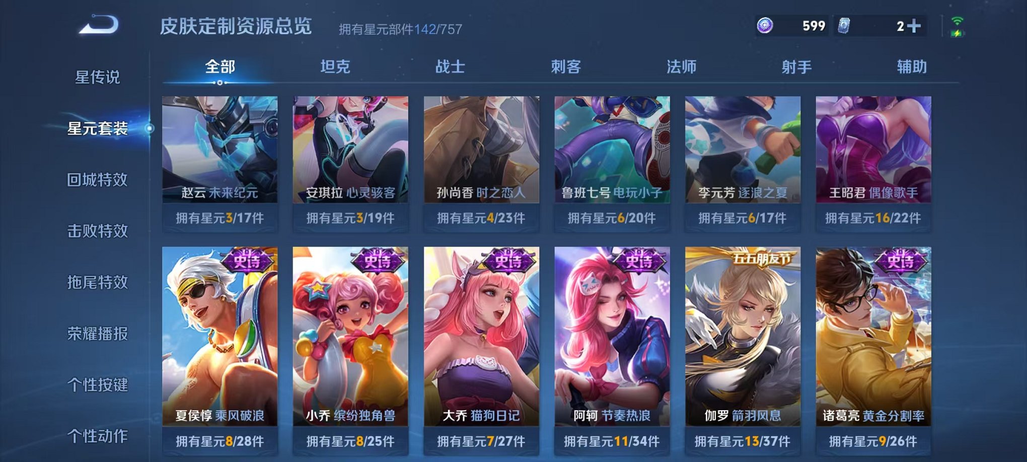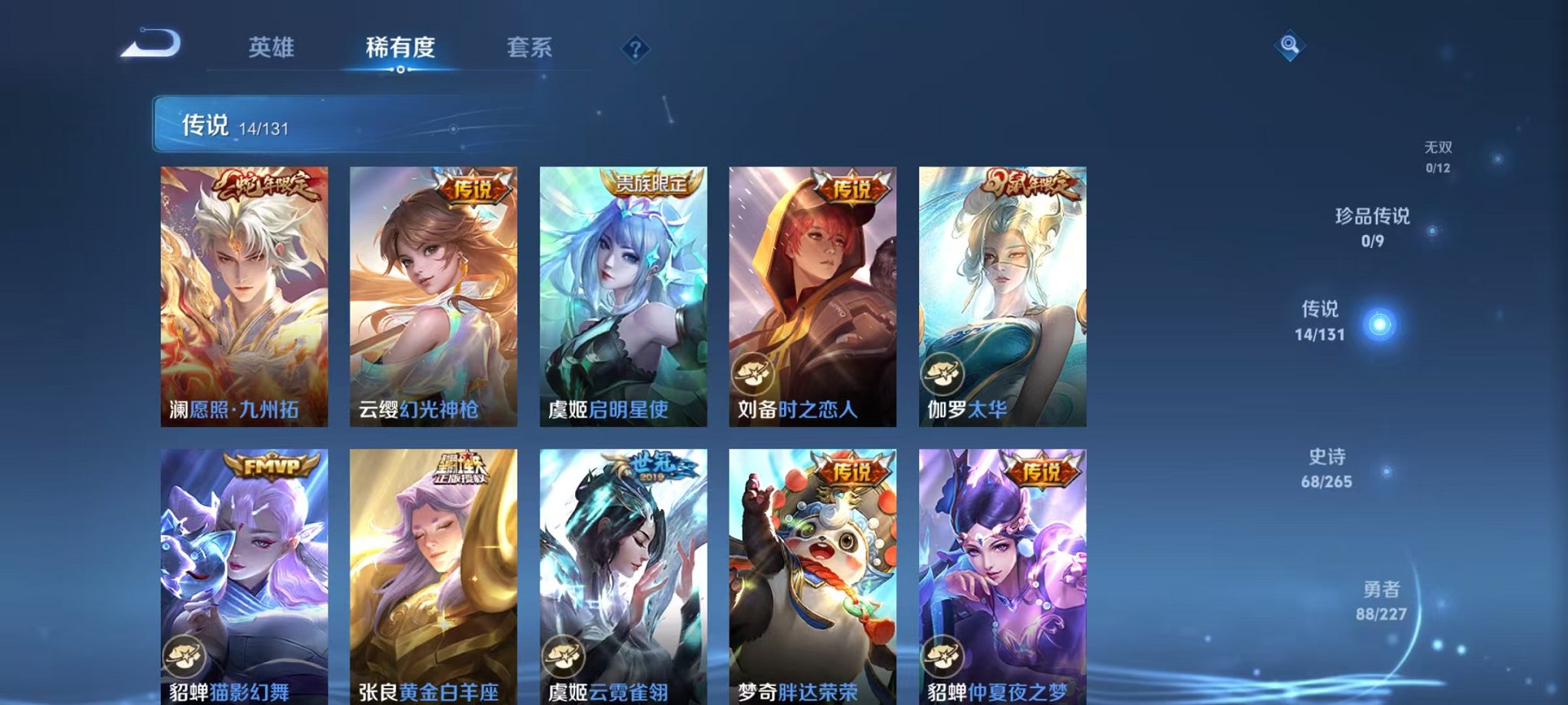 安卓QQ 皮肤240 英雄124 典藏1 传说14 其他皮肤94 无双王者-