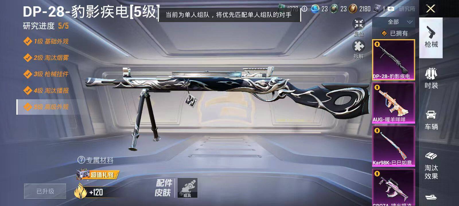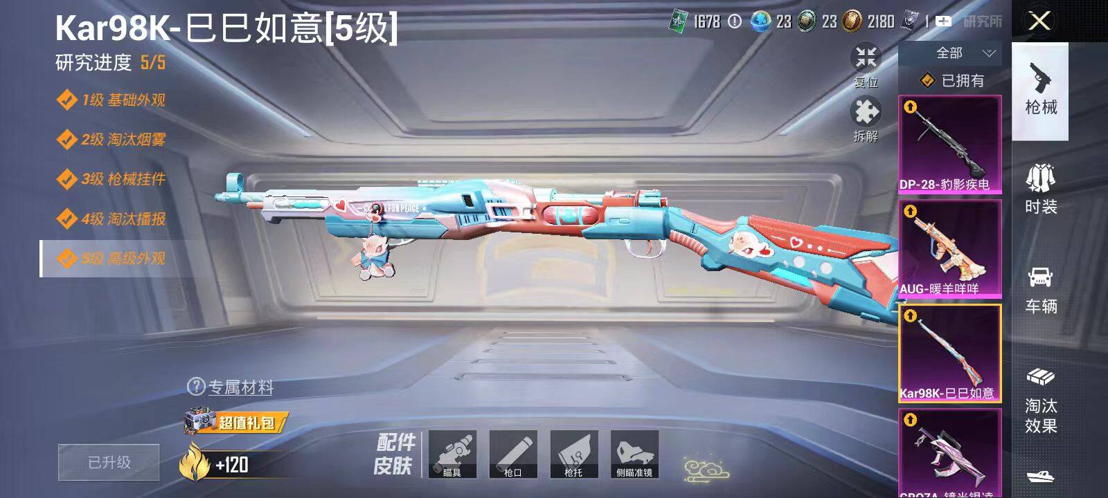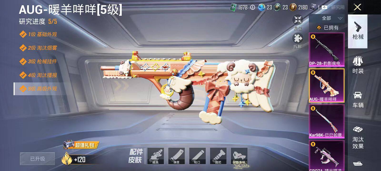 67套装/枪械5/装备113/战备72/王牌印记2/热力值26723/七级GROZA-焦糖拿铁/五级GROZA-镜光银凌/五级AUG-暖羊咩咩/五级Kar98K-巳巳如意/五级DP-28-豹影疾电/GROZA-焦糖拿铁/GROZA-镜光银凌/AUG-暖羊咩咩/Kar98K-巳巳如意/DP-28-豹影疾电/极意拳锋飞行器/绝对恒星降落伞/心之恋语降落伞/幻梦之森降落伞/套装-雪国风尚/套装-糖糖葫