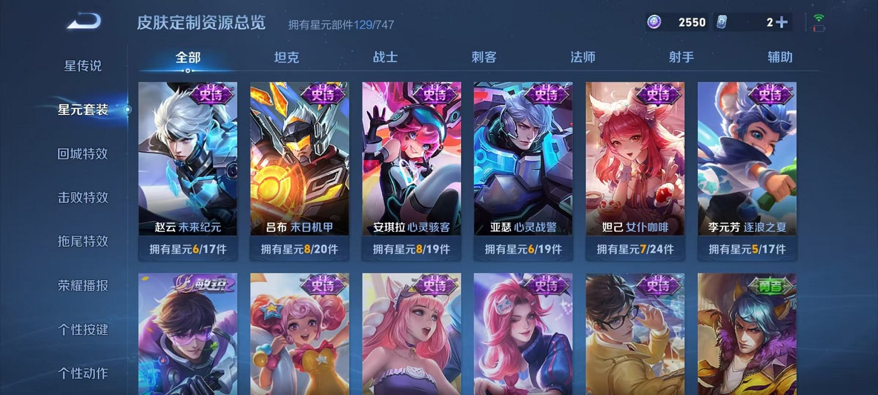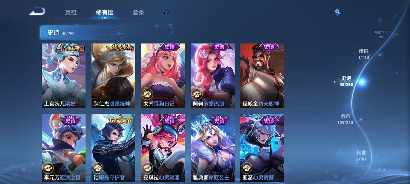 安卓QQ 皮肤238 英雄124 典藏1 珍品传说2 传说1 其他皮肤69 无双王者-