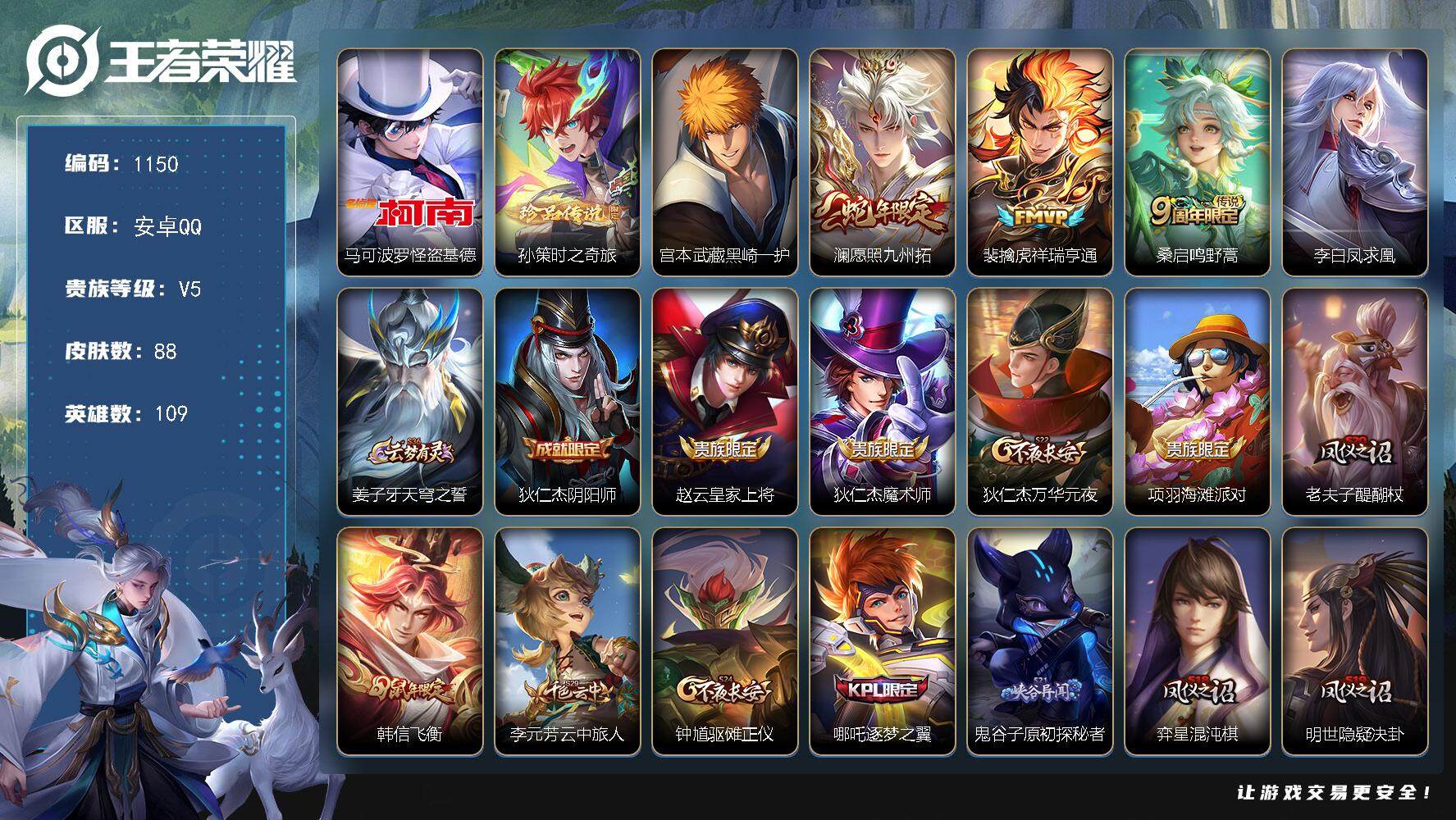 355-[14321048]贵族7-88皮-0典藏-4传说-0无双-3珍品传说-0全皮-灵宝改名卡1 安卓手Q286区88皮0典藏4传说0无双3珍品传说V5 营地ID1795340816永恒钻石III【珍品传说皮肤】:黑崎一护,时之奇旅,怪盗基德【优质限定皮肤】:凤求凰【传说皮肤】:凤求凰,鸣野蒿,祥瑞亨通,愿照·九州拓【史诗皮肤】:涂山容容,百相守梦,幽灵船长,龙之律动,暗隐猎兽者,石田雨龙,龙骑士,圣诞狂欢,鹰眼统帅,修罗,心灵骇客,纤云弄巧,李小龙,紫霞仙子,魅力维加斯,水果甜心,地狱岩魂