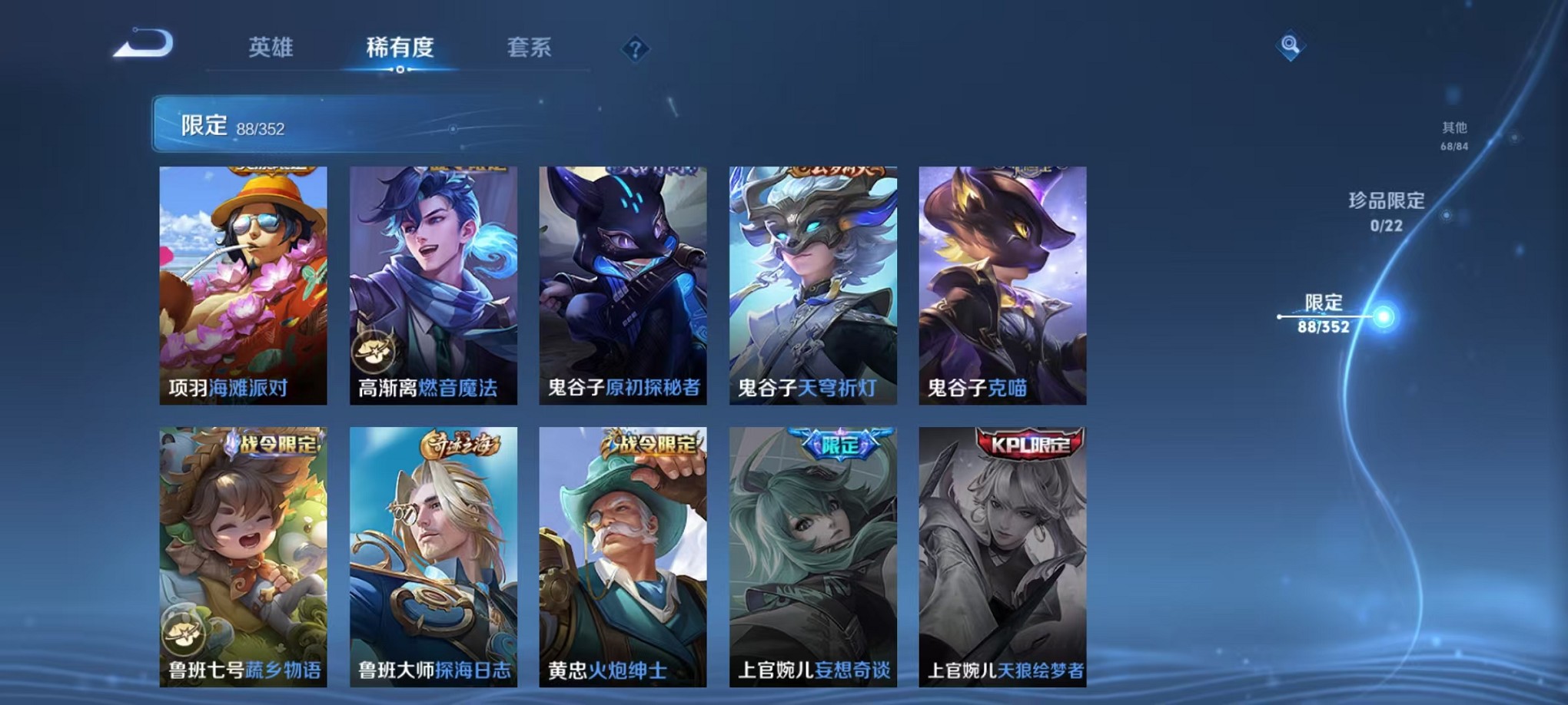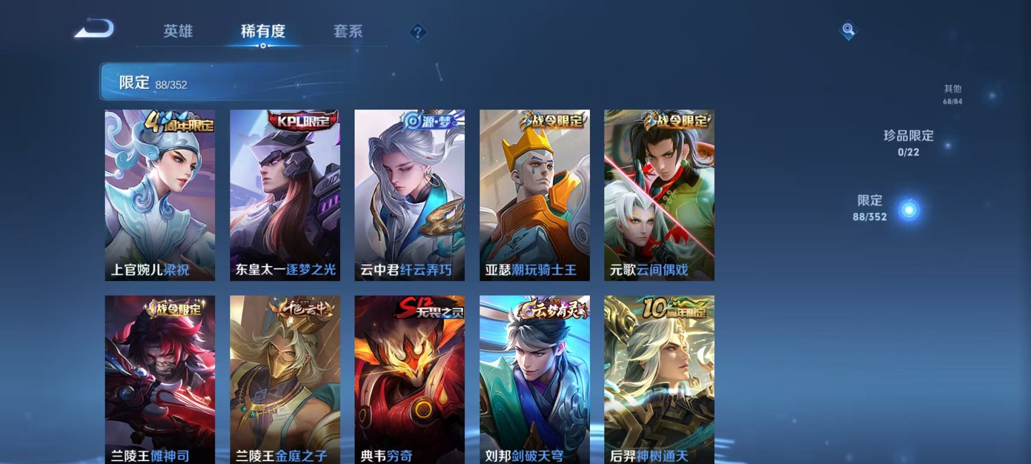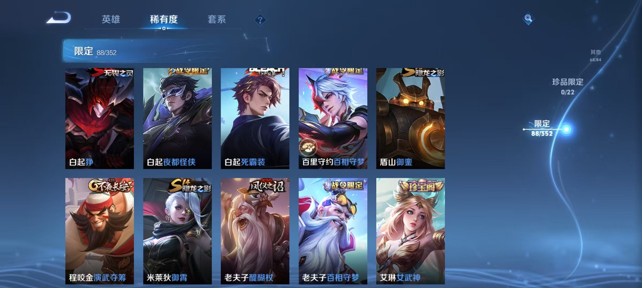 安卓QQ 皮肤285 英雄126 典藏1 传说9 其他皮肤110 无双王者-