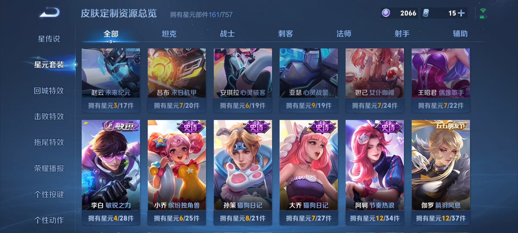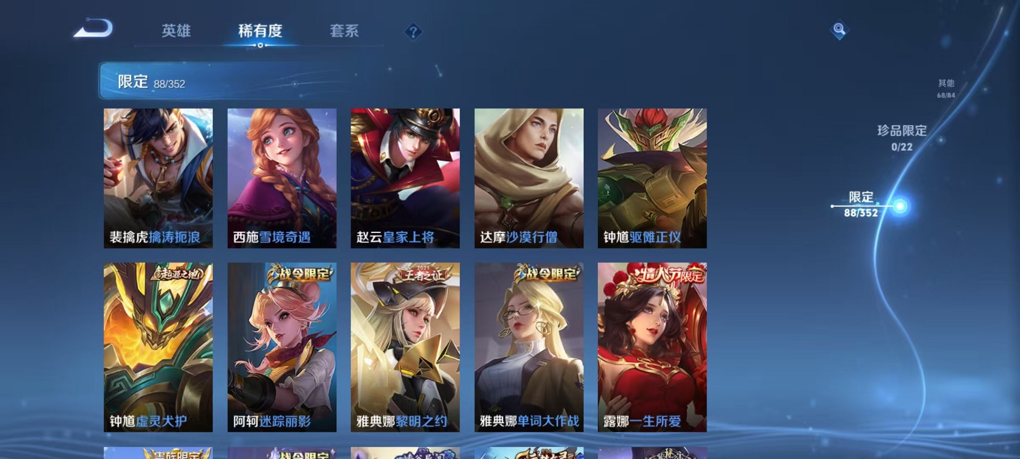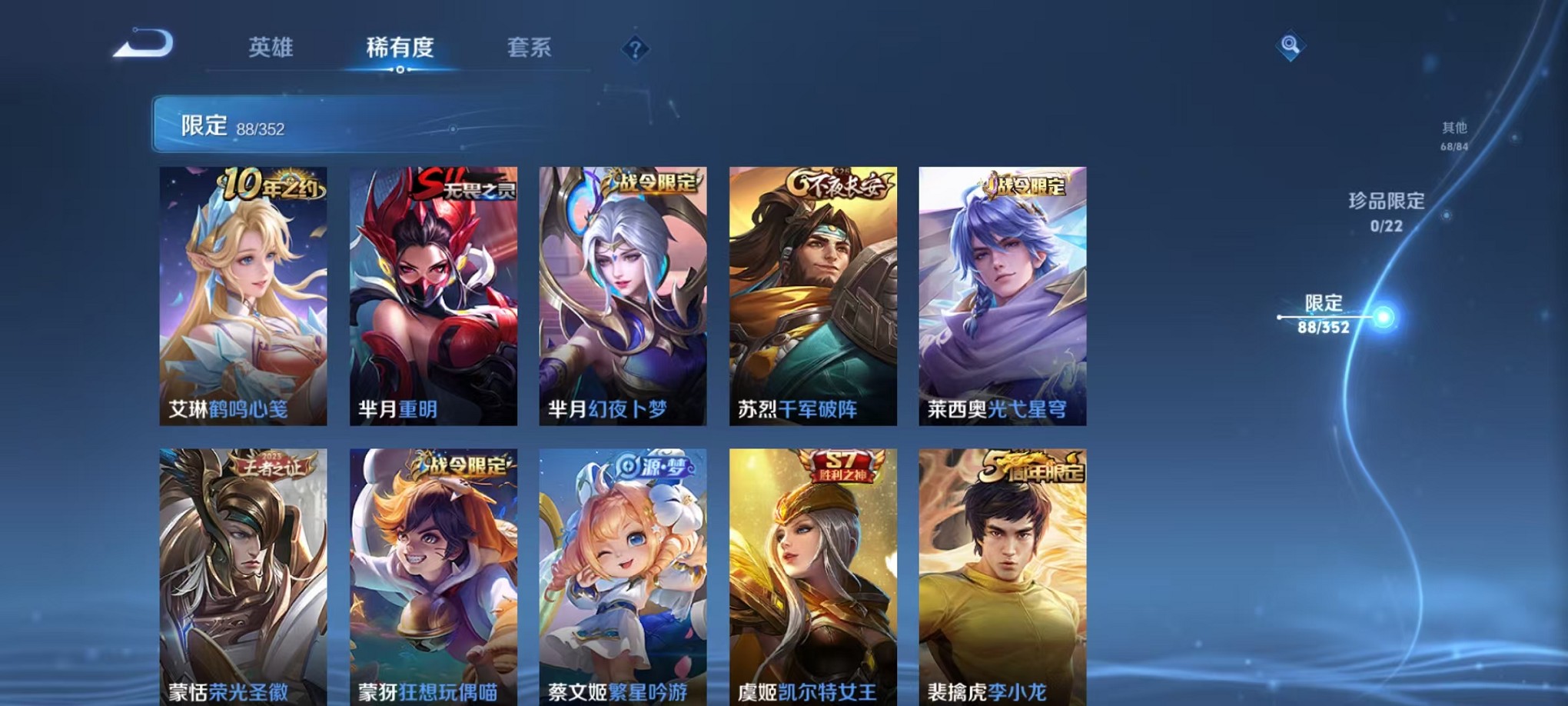 安卓QQ 皮肤285 英雄126 典藏1 传说9 其他皮肤110 无双王者-